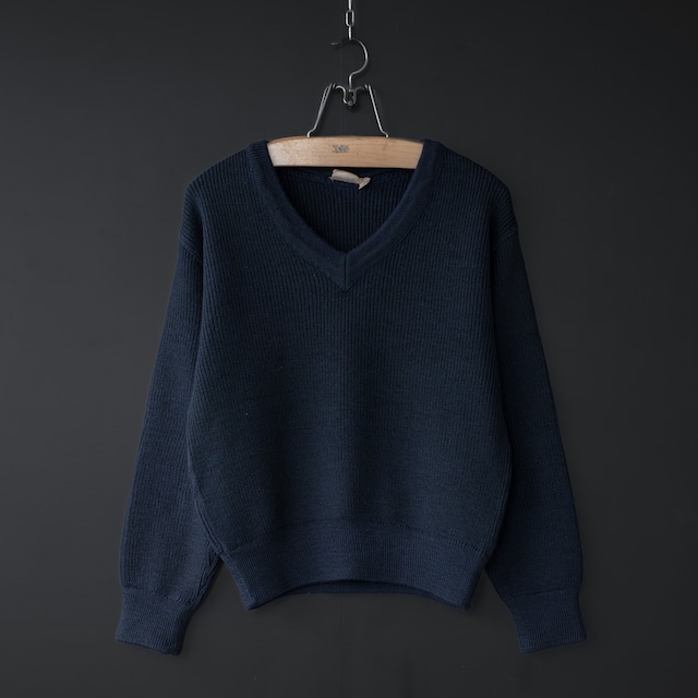 【国】 french military / フランス軍 【商品名】 v-neck rib knit Vネック リブニット 【定価】 7,150円(税込) 【商品説明】 フランス軍80年代のニット。 適度な深さのVネックで、そのままでもレイヤーしても。 防寒性に優れたクロロファイバーとウールを使用し、そこそこ厚手で冬向け。 上品な印象。 ※その他[ミリタリーアイテム]はこちら https://www.drosdro.jp/categories/5691535 【素材】 ウール55% / クロロファイバー45% 【サイズ】 サイズ表記 : 104 肩幅 : 51cm 身幅 : 56cm 袖丈 : 67cm 着丈 : 67cm ※平置き採寸ですので多少の誤差はご了承ください。 【生産国】 フランス ※同米子市内姉妹店の[olaf オラフ] (https://olaf.theshop.jp) に置いている場合がございますので店頭にない場合はご案内させていただきます。 ※ご覧になるディスプレイによって色合いが異なることがありますが、ご容赦くださいますようお願いいたします。 ※実店舗、他サイトでも販売している為、在庫の変動がある場合がございます。何卒ご容赦くださいますようお願い致します。 ※佐川急便以外の配送方法は日時指定が行えませんので予めご了承くださいませ。 ※レターパックをご選択いただいた際、内容物の量により佐川急便に変更することがございます。当店都合の配送方法変更の場合、送料の差額は当店で負担いたしますのでご安心くださいませ。 ※古着と踏まえた上でご検討くださいますようお願い申し上げます。