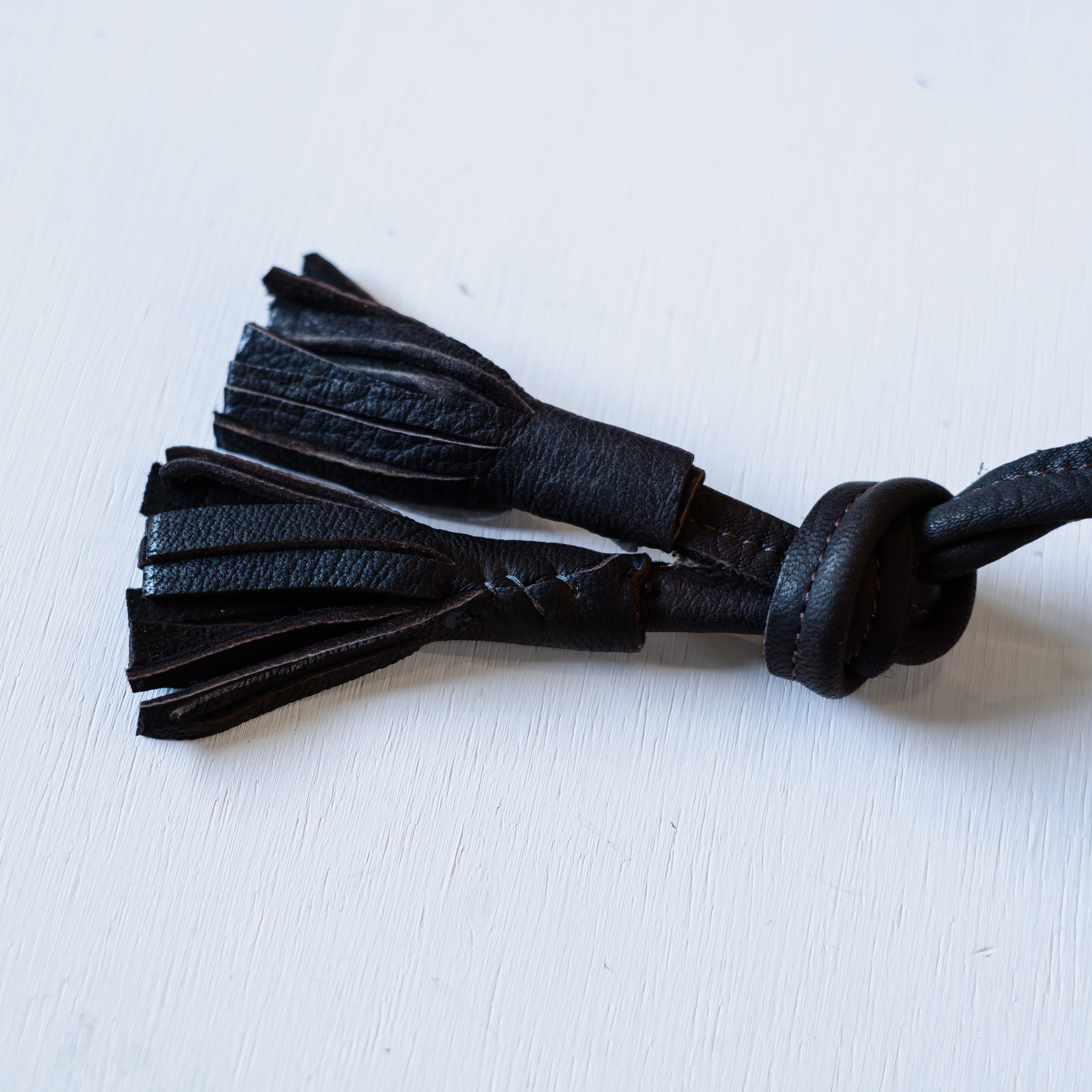 手持ちの巾着としても、結び目をほどいてストラップを長くするとタッセル部分でちょうど止まるので短めショルダーバッグとしても使えます。