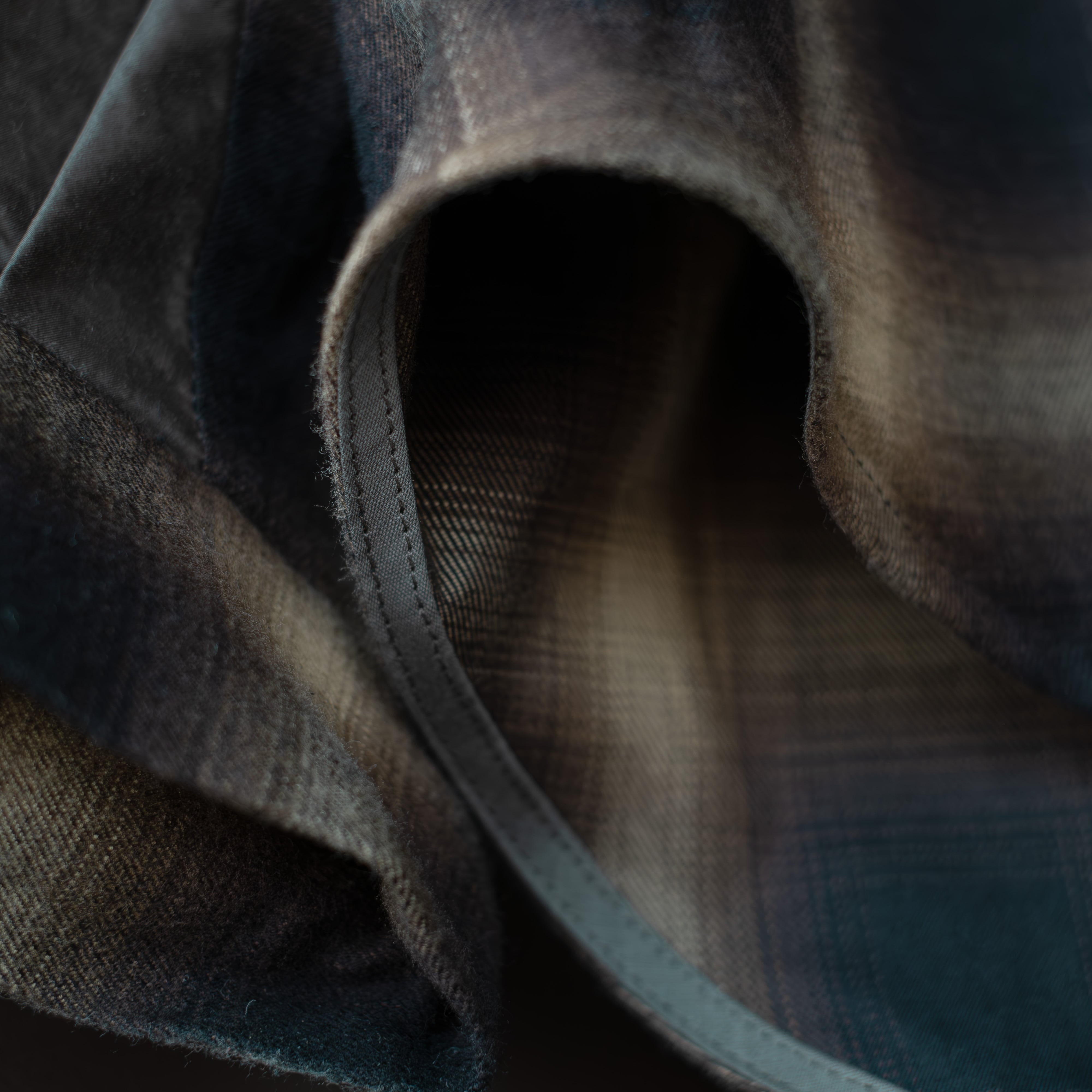 カートコバーンを彷彿させるオンブレチェックシャツにワックスコーティングを施したVINTAGE調の生地をミックスしたオチ感の有る弊社定番のタックシャツの進化形です。