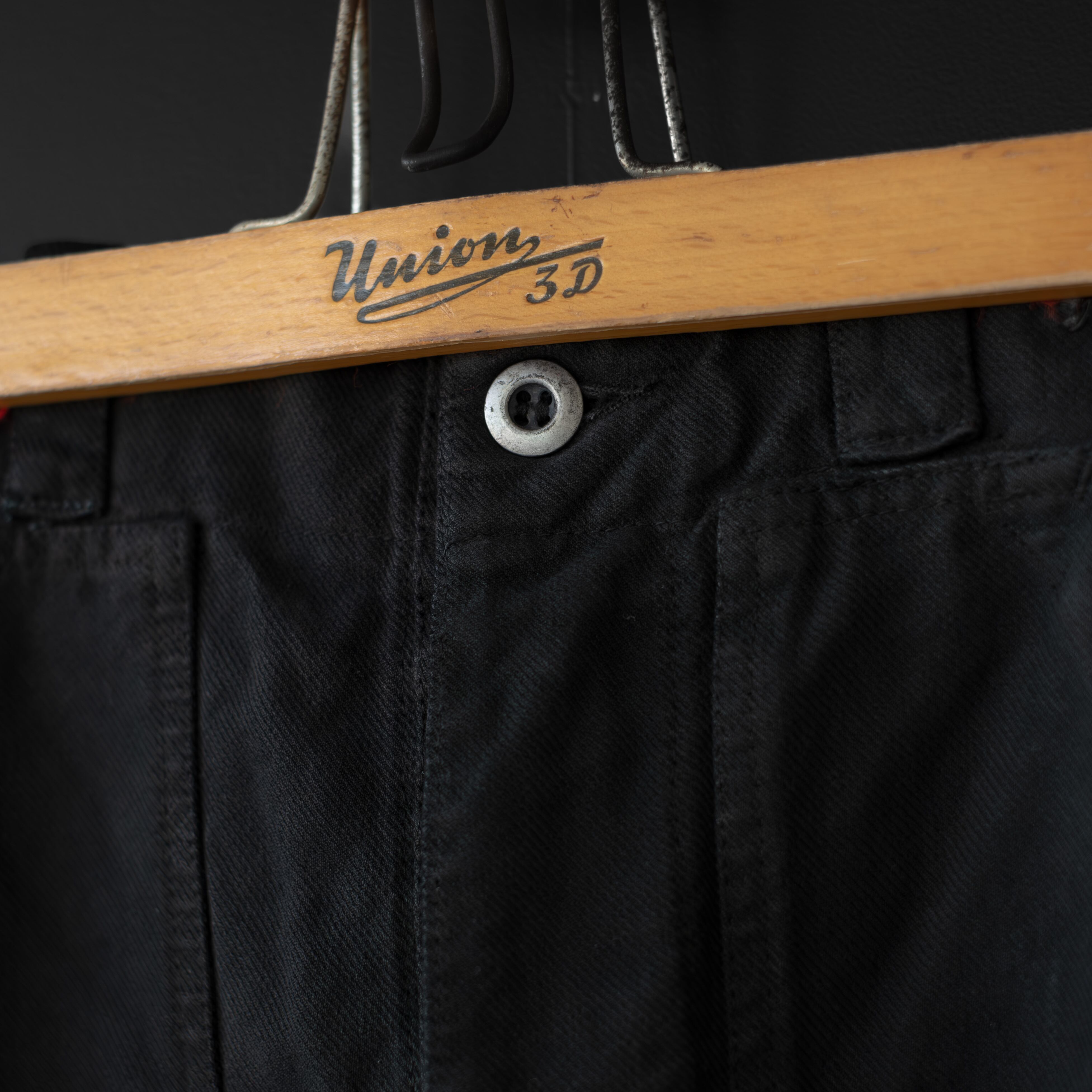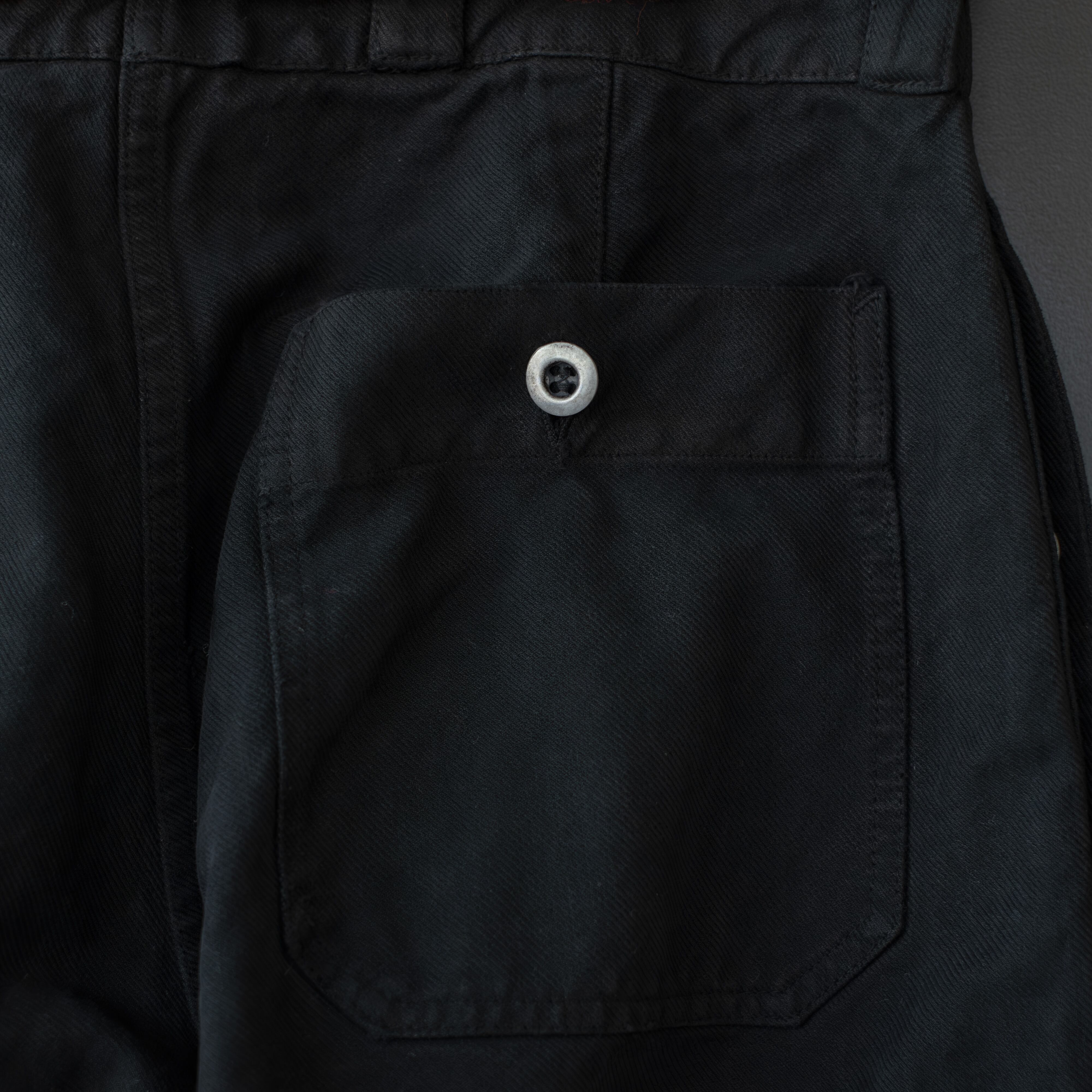 スイス軍が1950年代頃に採用していたデニムワークパンツを黒染め。