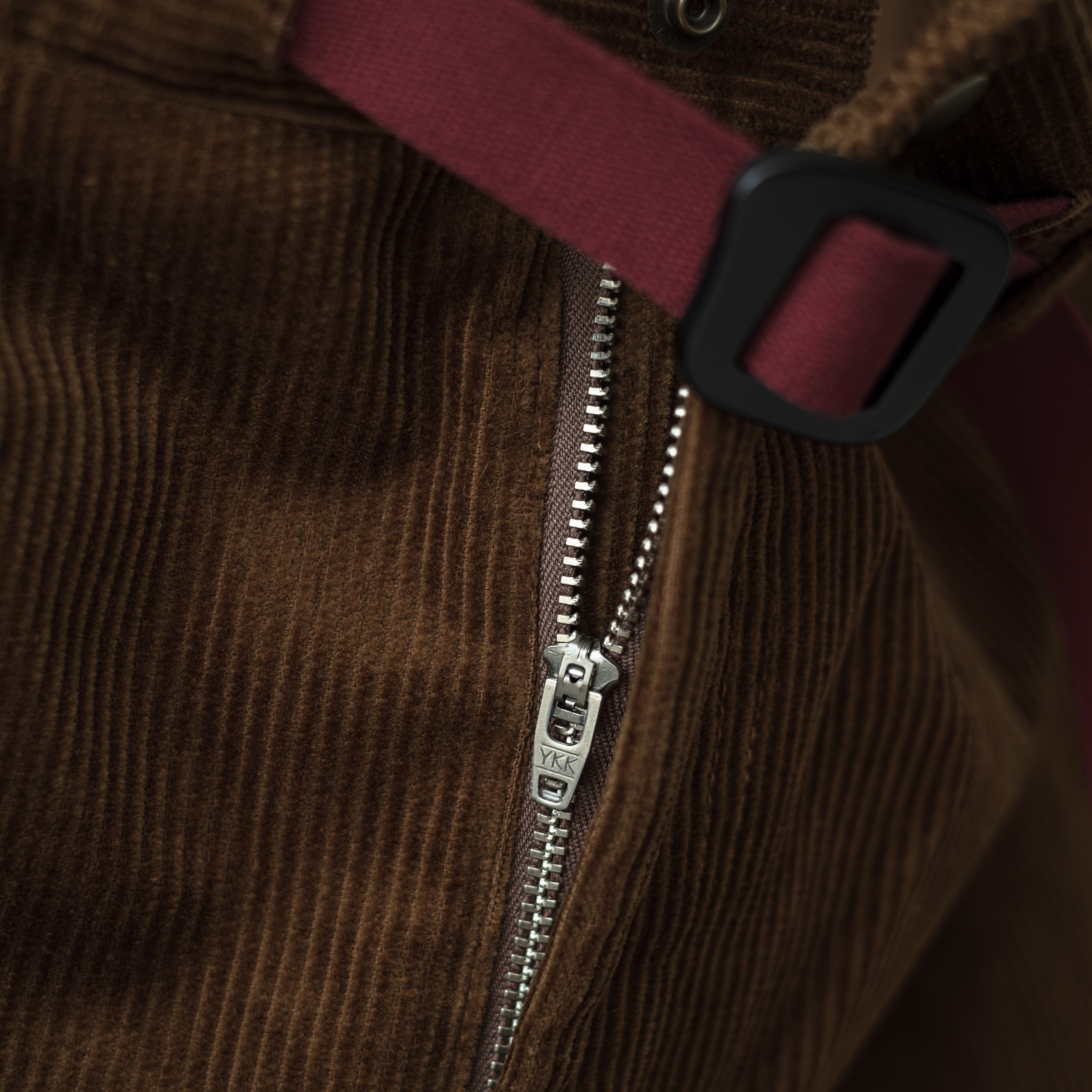 先染めのコットン糸を使用したやや太畝のコーデュロイ。