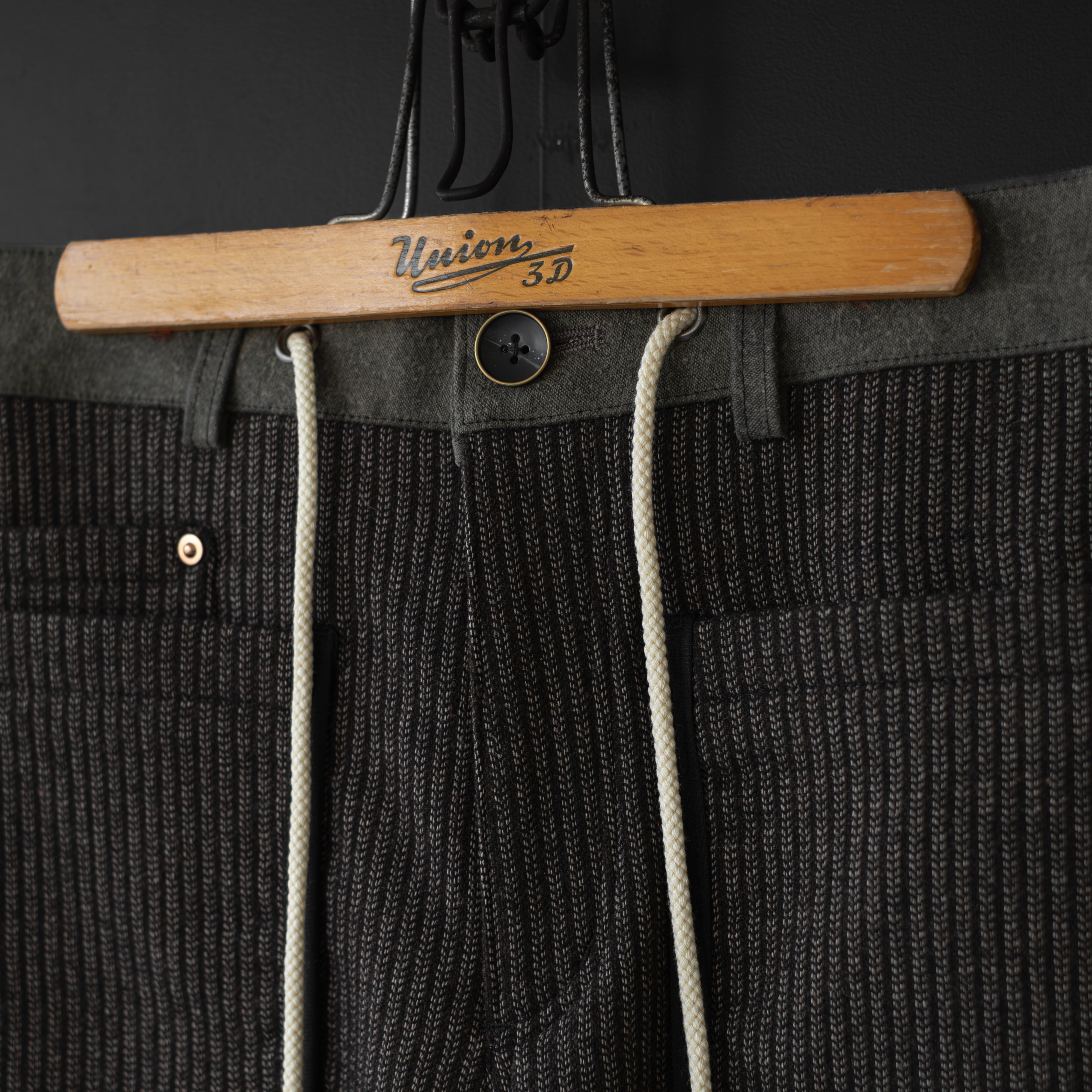 アメリカ東海岸の寒冷地で働く労働者の為に開発されたブラウンズビーチのマテリアルでお馴染みの『ビーチクロス』を現代版にアップデートした復刻素材を用いて製作した美脚シルエットが秀逸なブーツカットのパンツ。