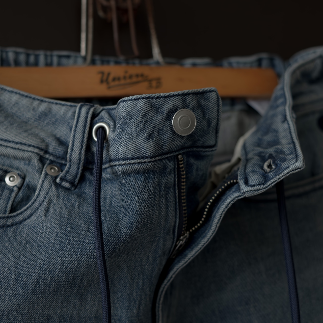 ストレッチの効いたデニムを使用したジャージデザインデニムパンツ。