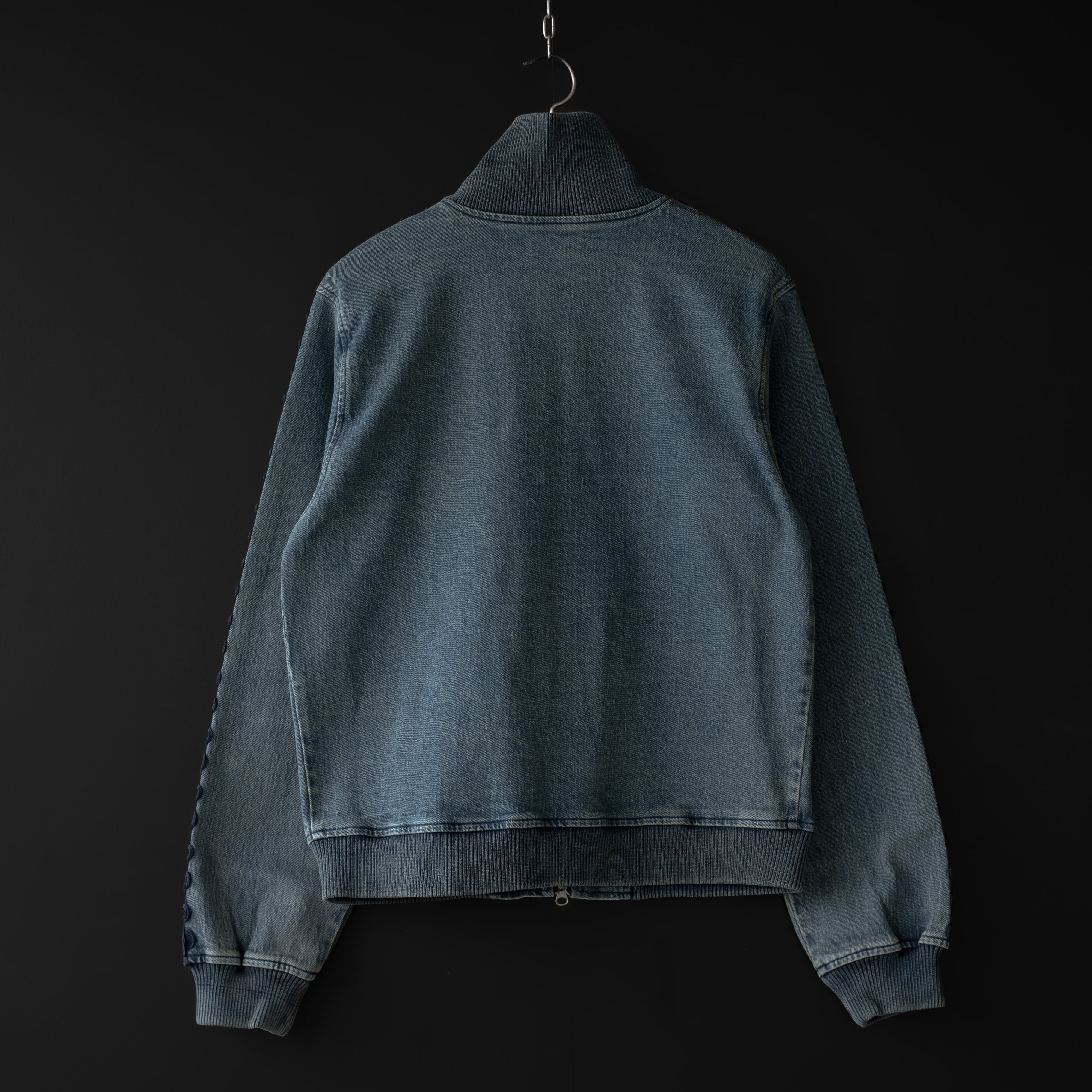 ストレッチの効いたデニムを使用したジャージデザインデニムジャケット。