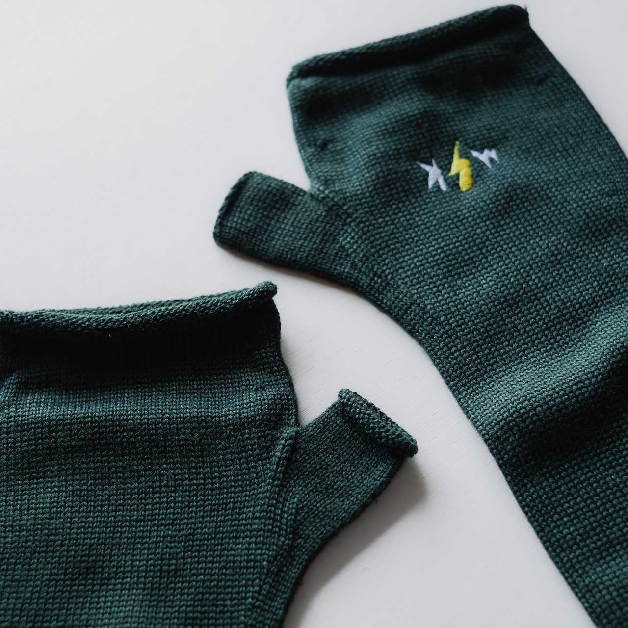ホールガーメント(無縫製)編み機で製作したニットアームウォーマー。