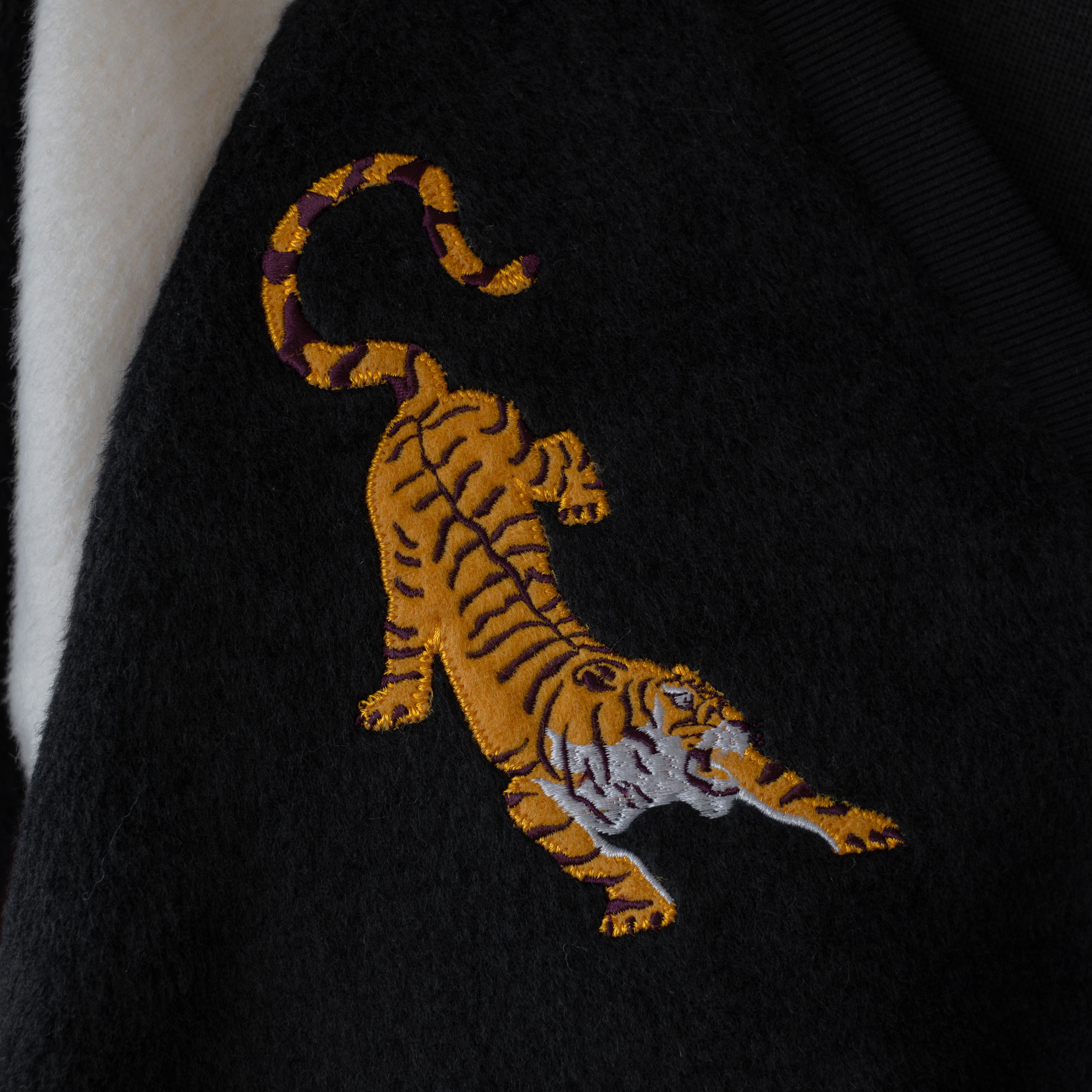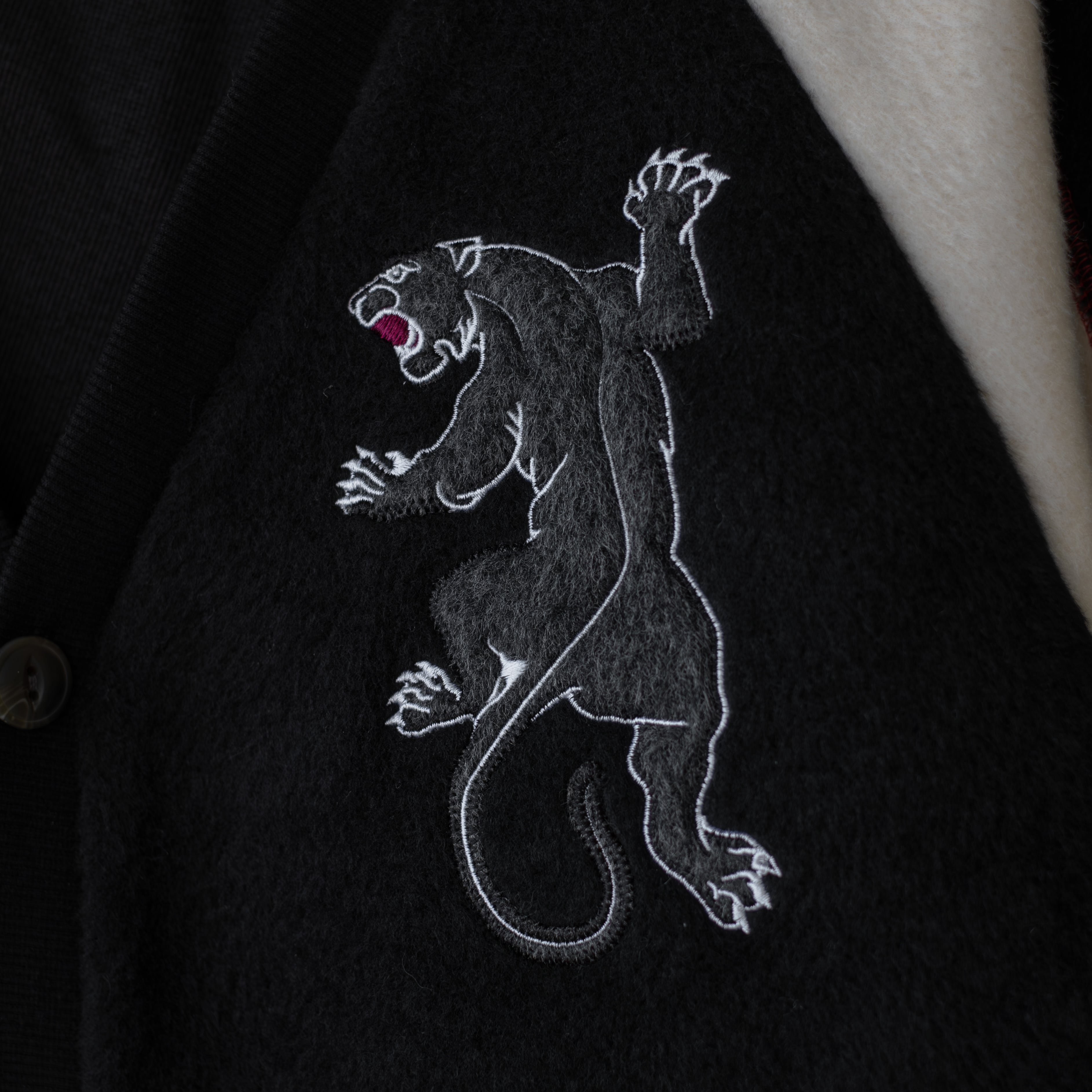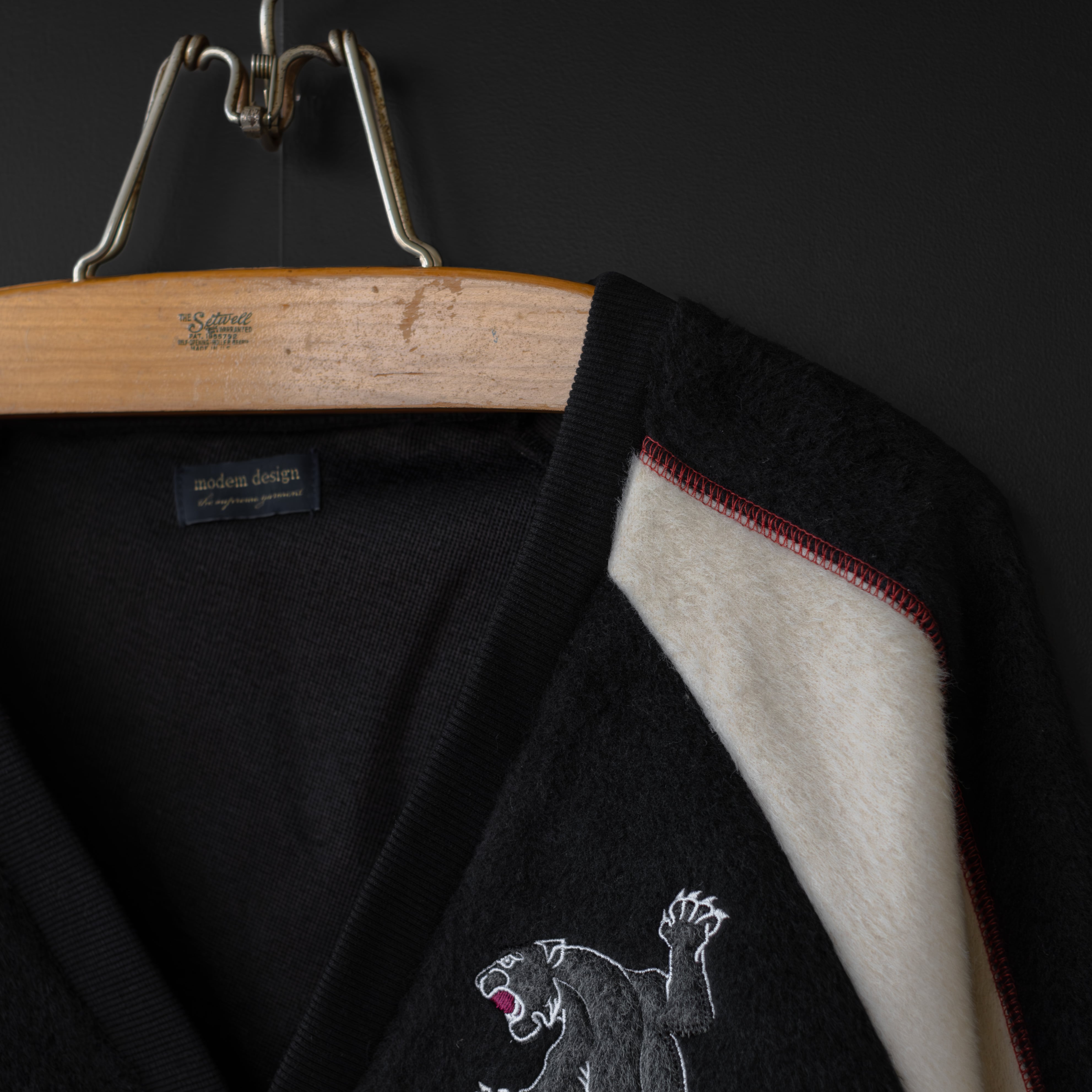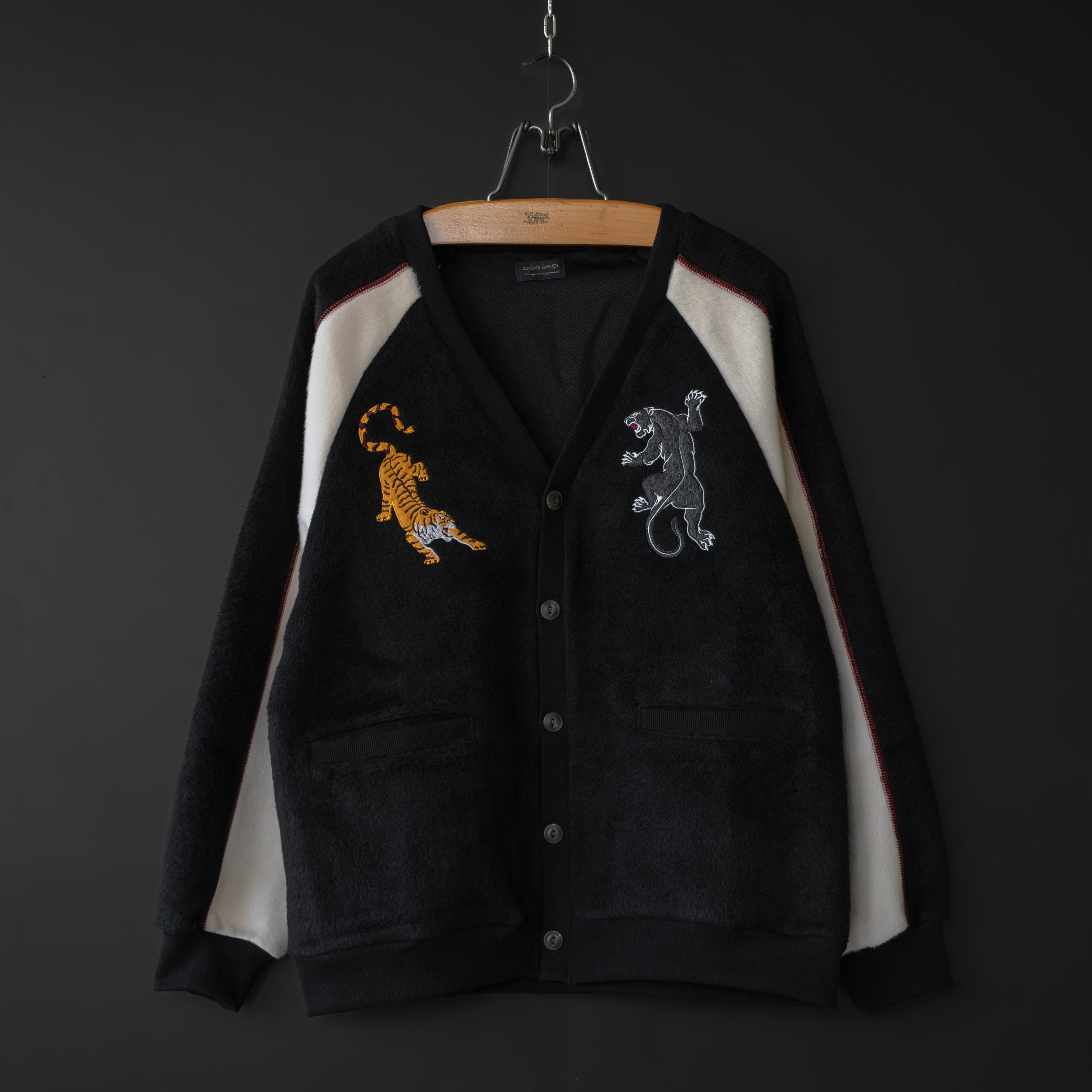 スーベニアジャケットに見られるような刺繍をと切り替えしたありそうでなかったカーディガン。