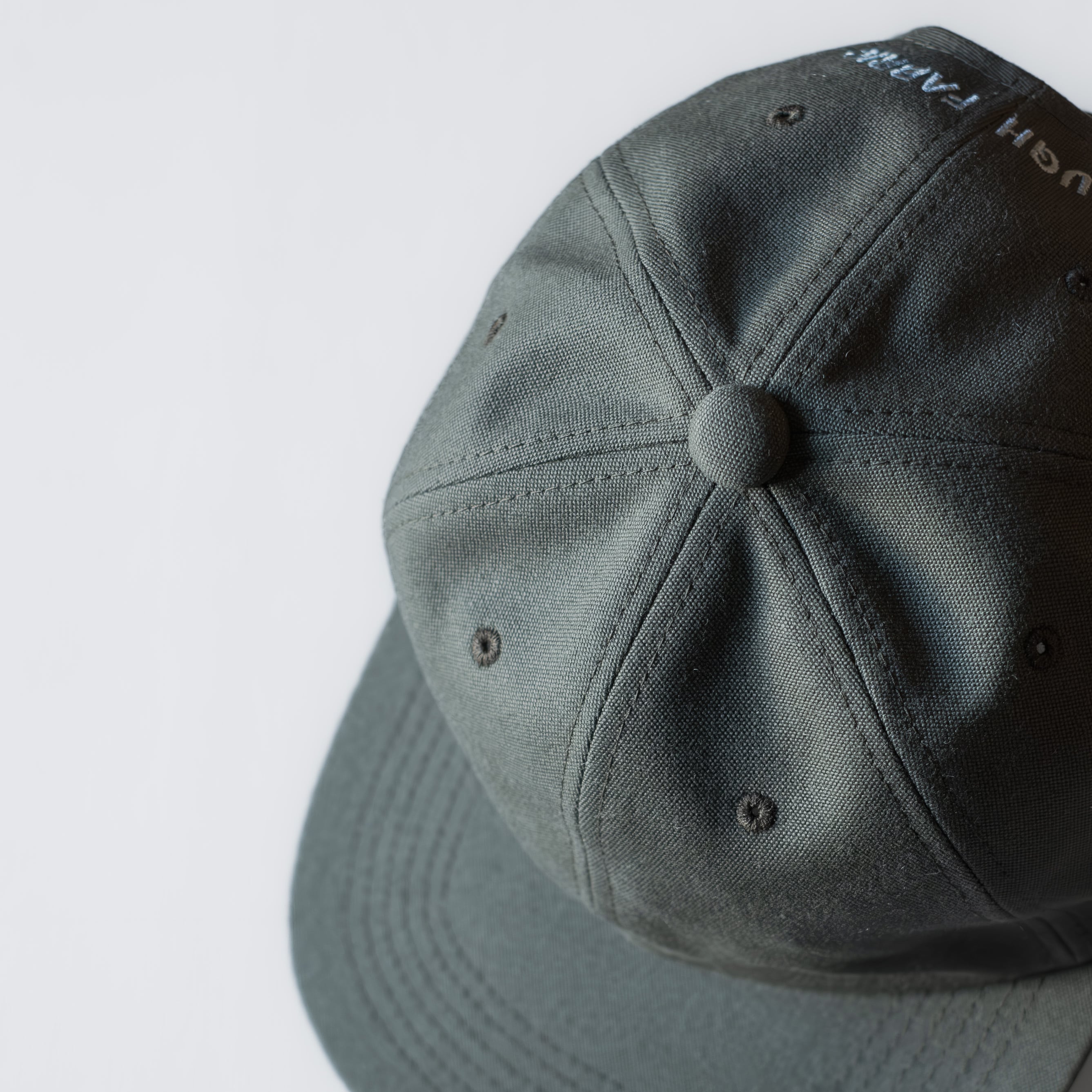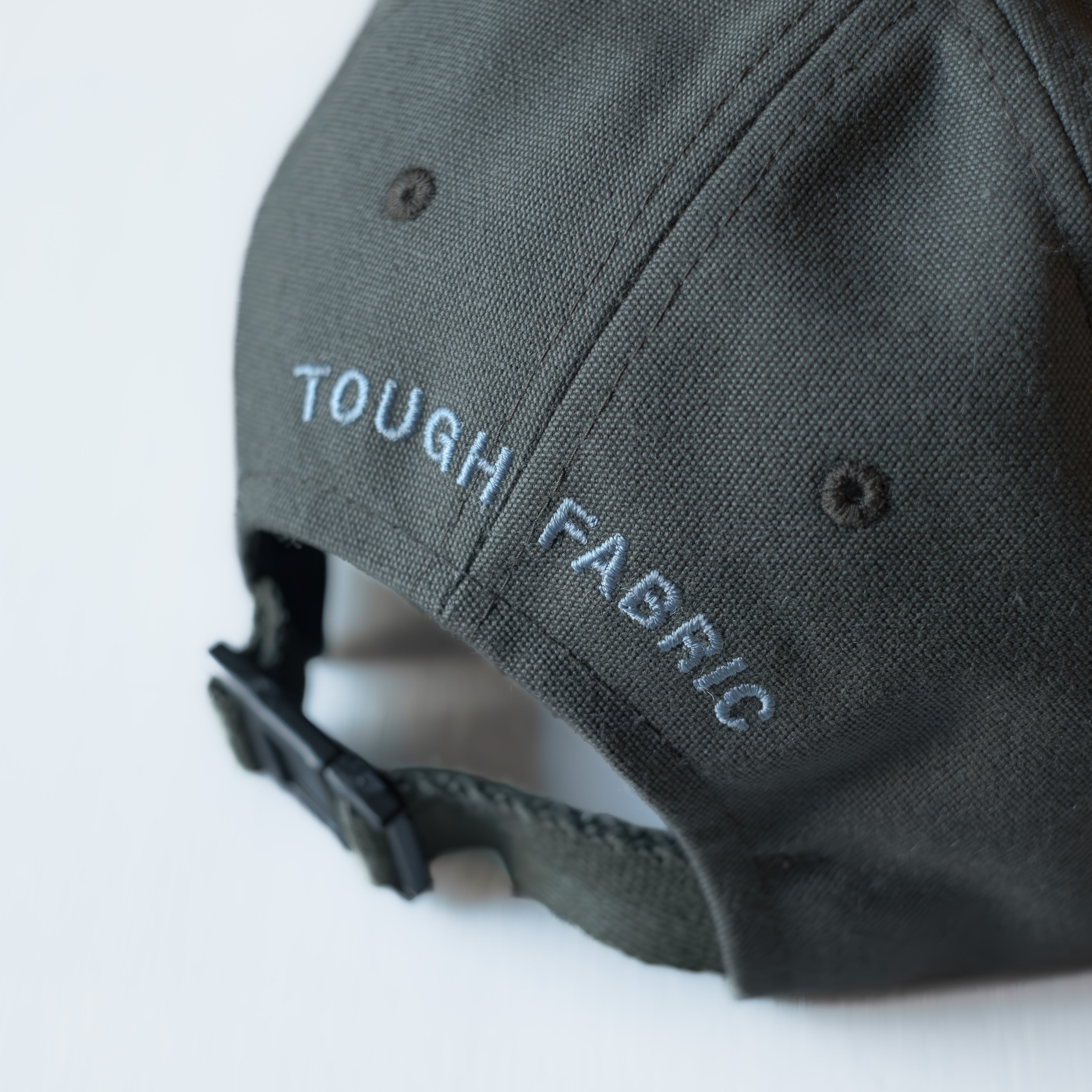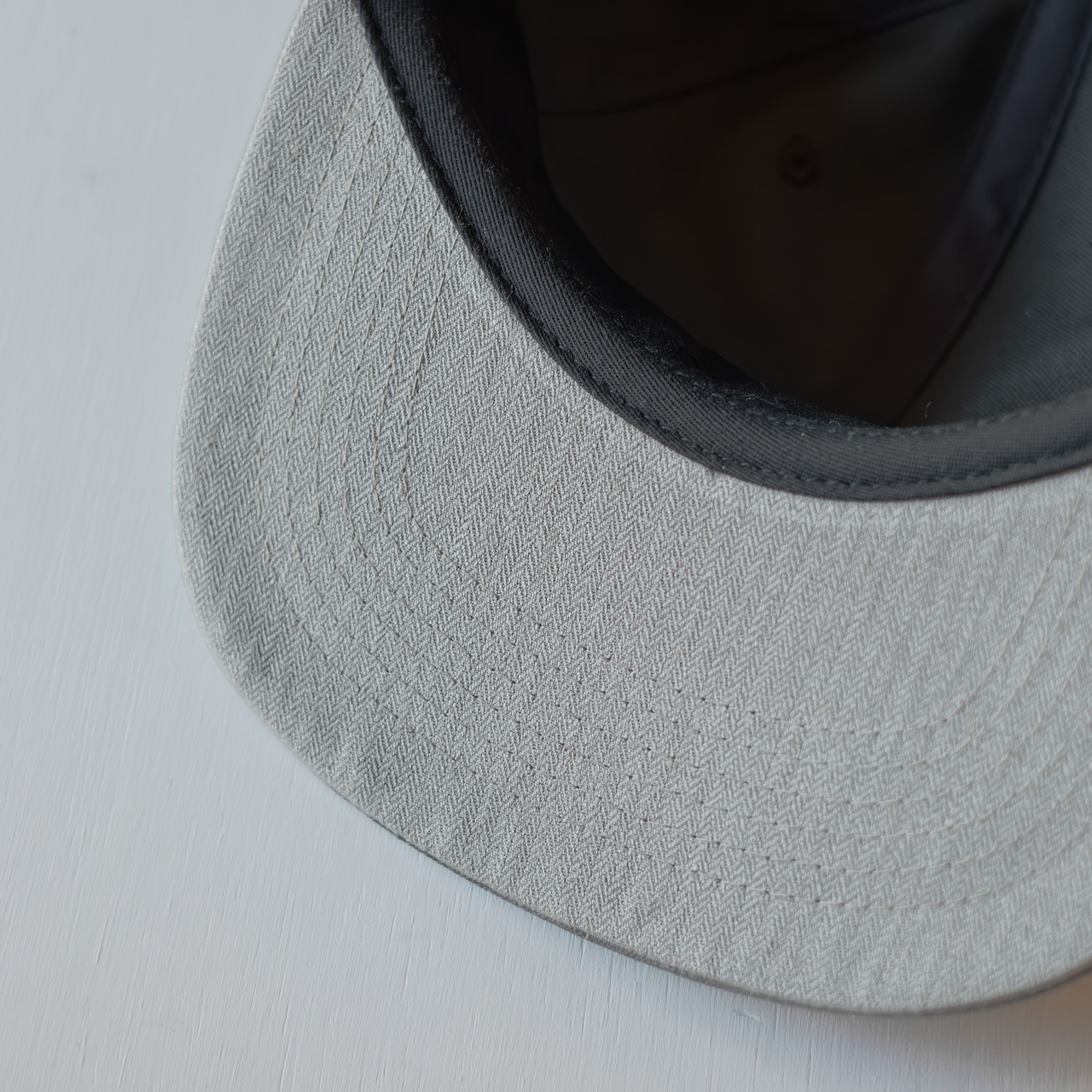 本体は自衛隊の宿営用天幕宿の綿麻の帆布、ツバ裏はリネン糸40番手の高密度ヘリンボン生地を使用。