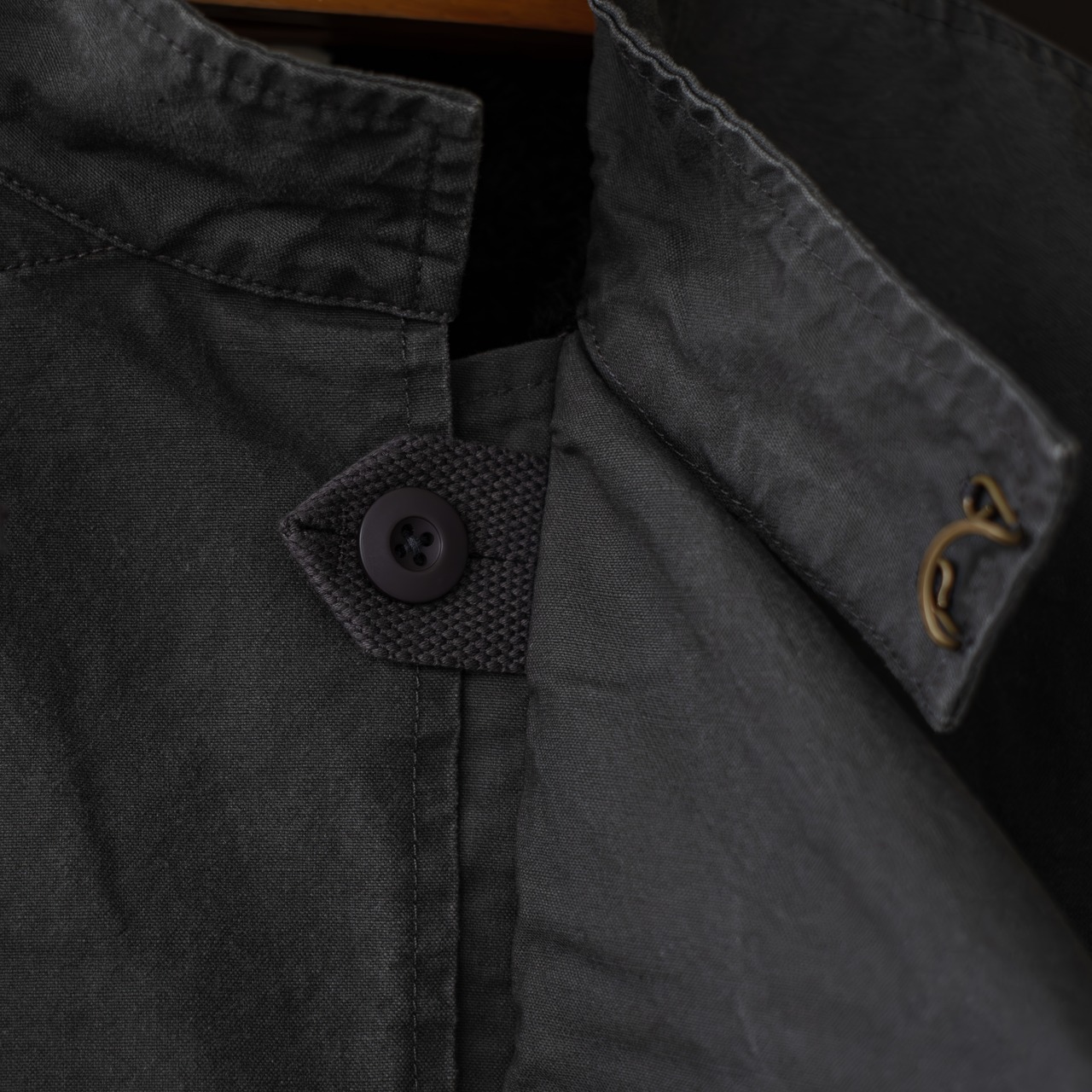 タフなバックサテンを使用したスウェーデン軍タイプのモーターサイクルジャケット。