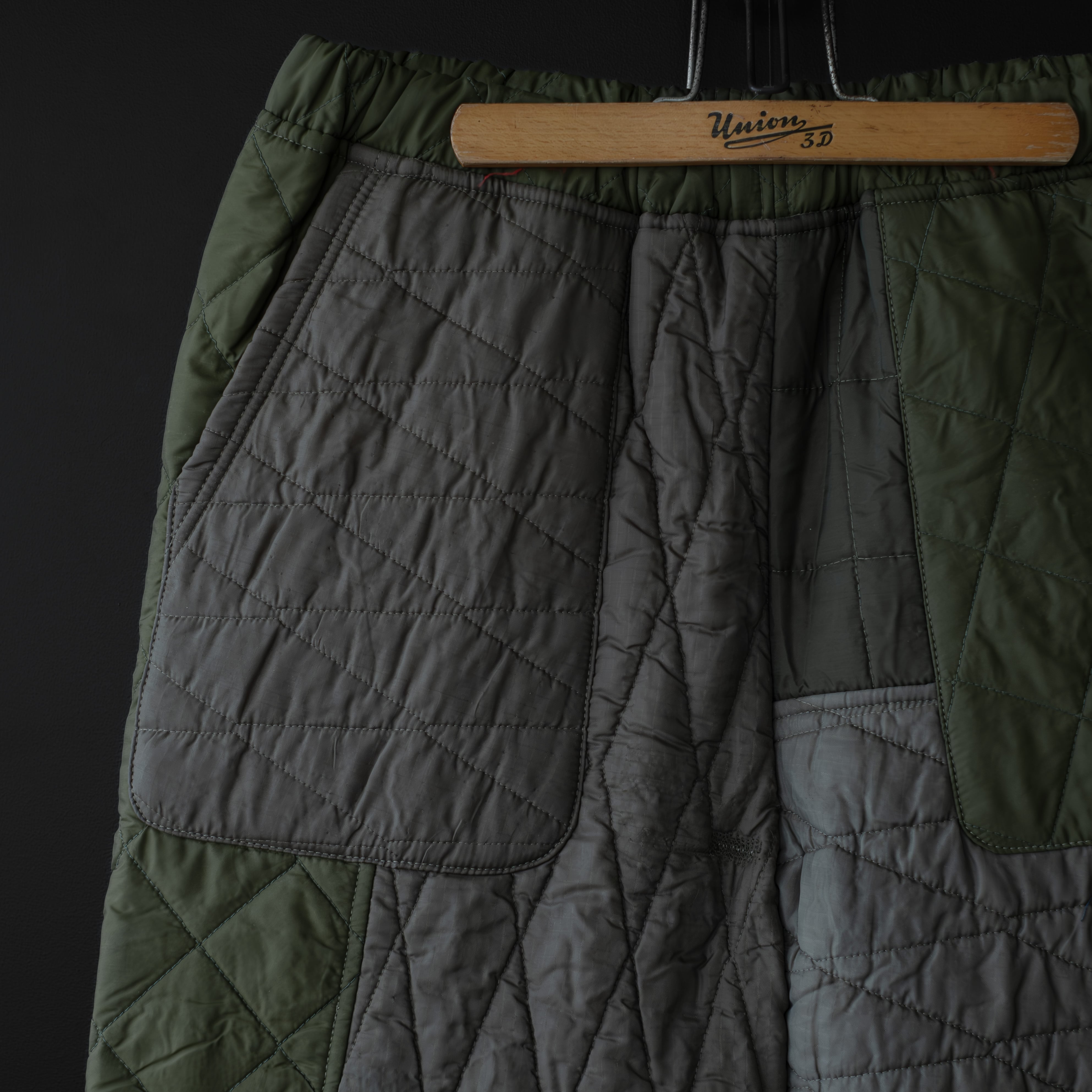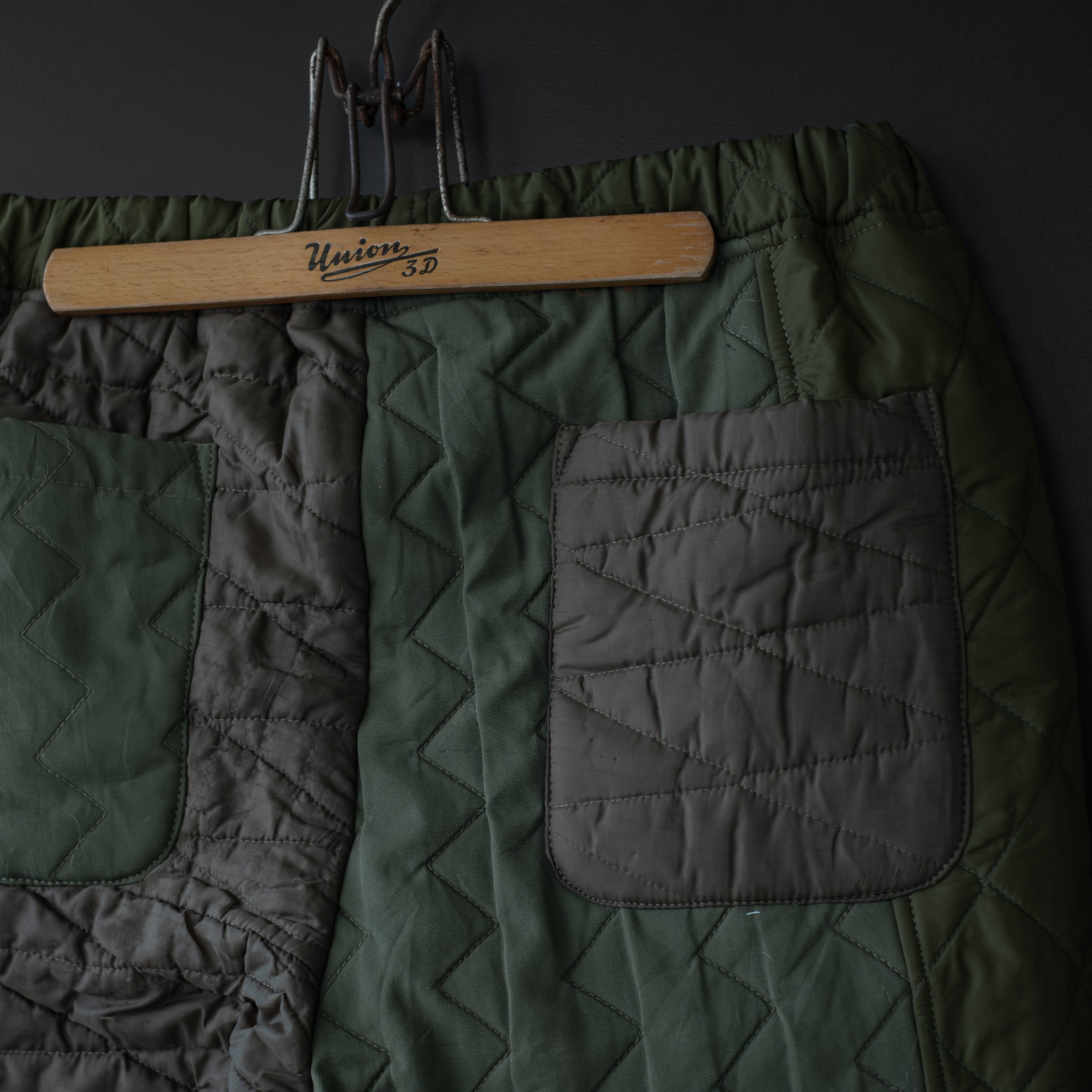 ミリタリーなどによく見られるライナージャケットやライナーパンツを解体して、イージーパンツに再構築。