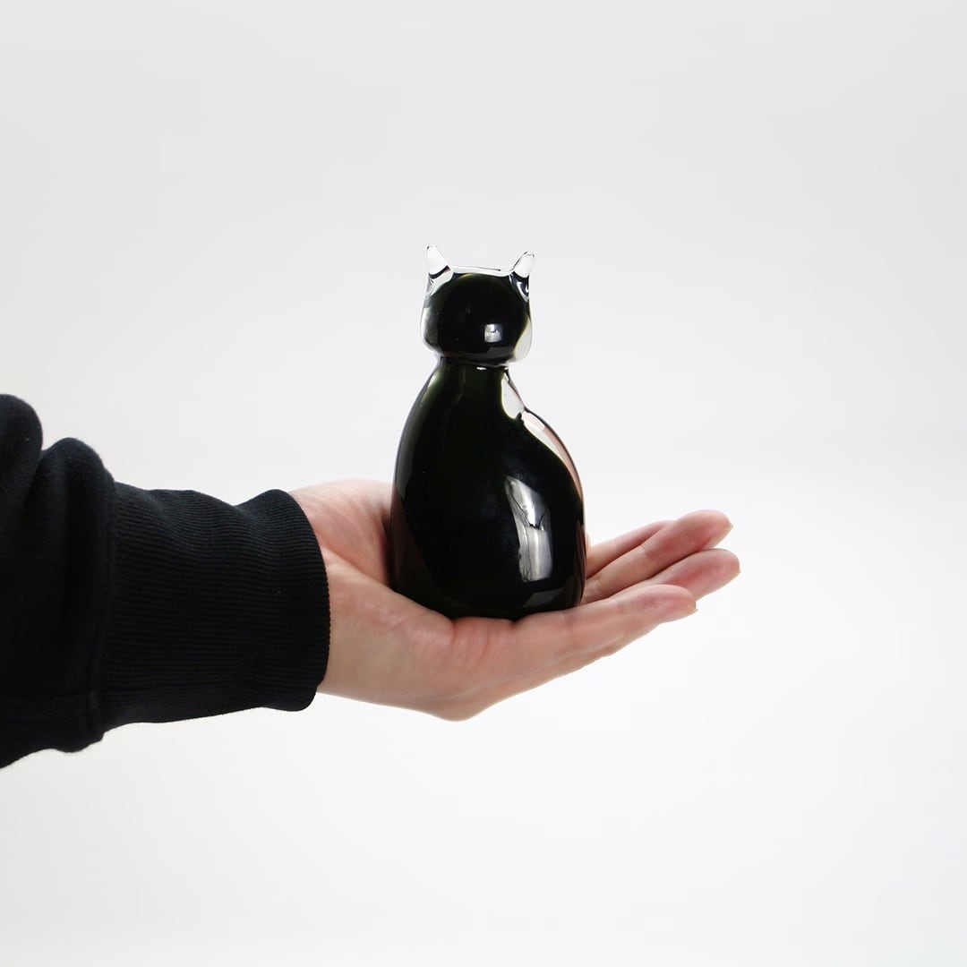 猫らしいやわらかいシルエットで、じっと主人を見つめるような様子が愛くるしいガラスオブジェです。手のひらサイズでほどよく感じる重みは子猫のようで、大切にしてあげたくなる不思議な魅力を感じます。