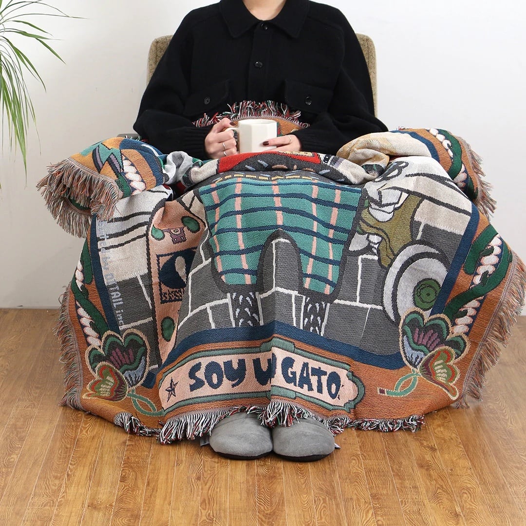 オアハカ スローケット "ブラック キャット" | 黒猫モチーフの通年使える大判ブランケット