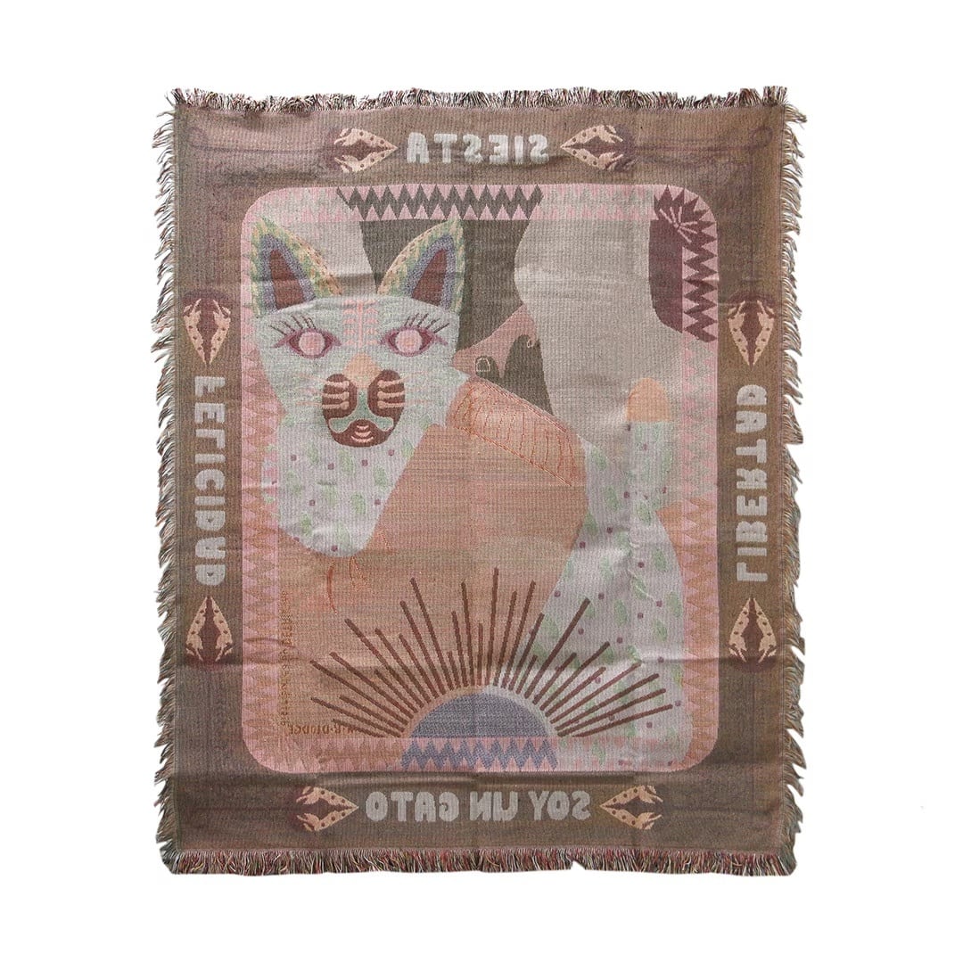 オアハカ スローケット "キャット" | 猫モチーフの 通年使える大判ブランケット