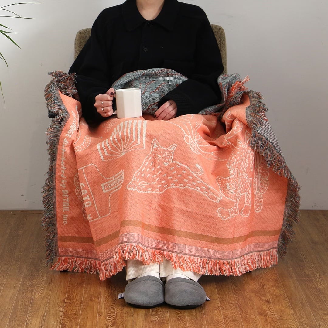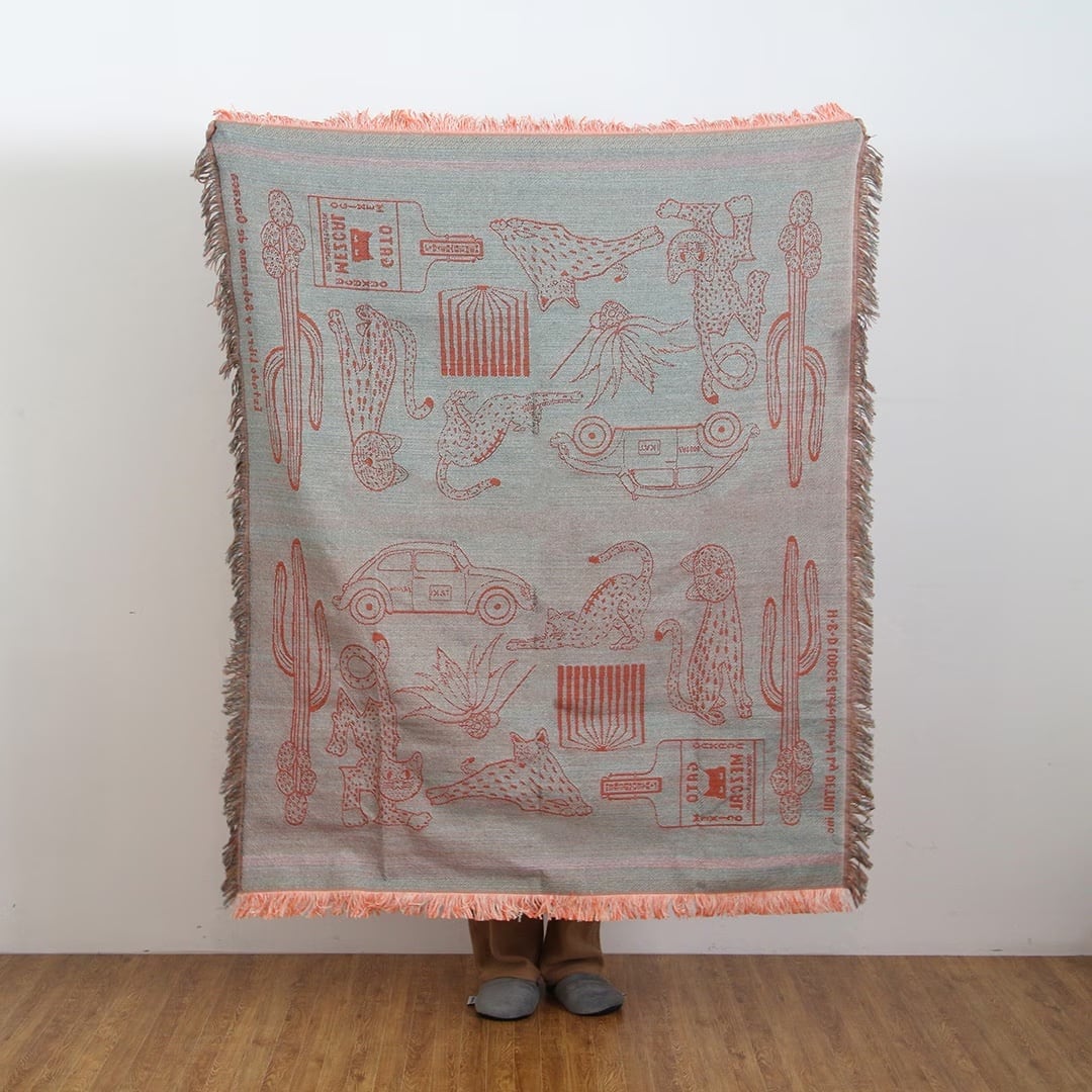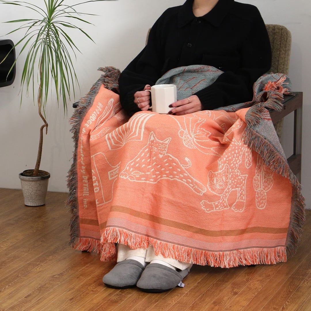 オアハカ スローケット "キャット アンド モア" | 猫モチーフの通年使える大判ブランケット