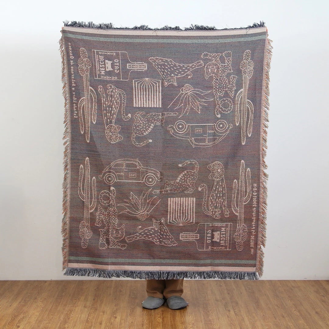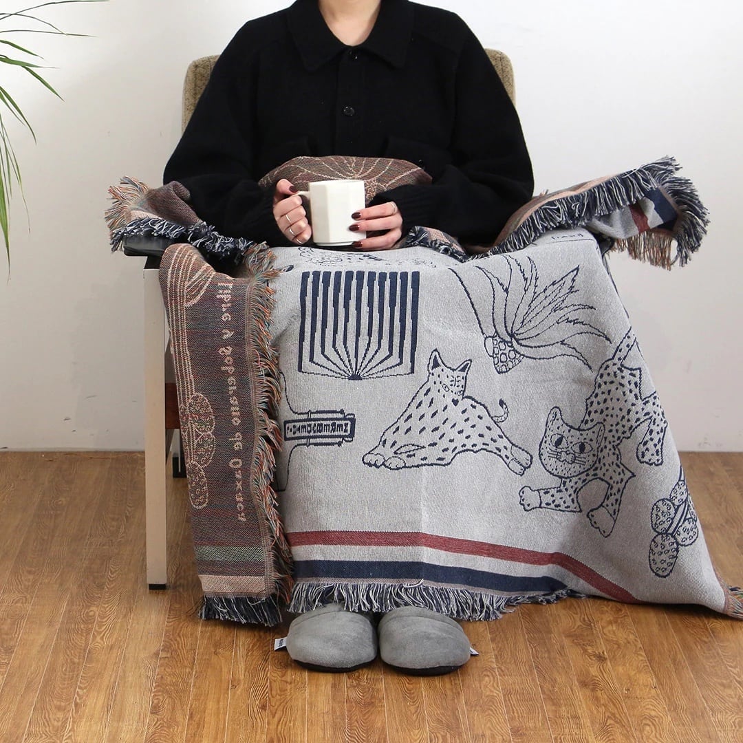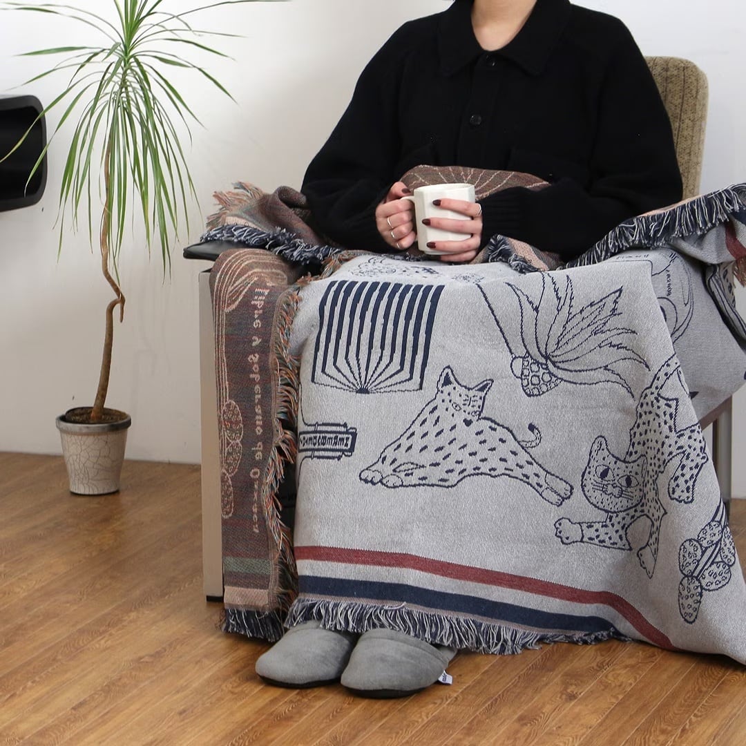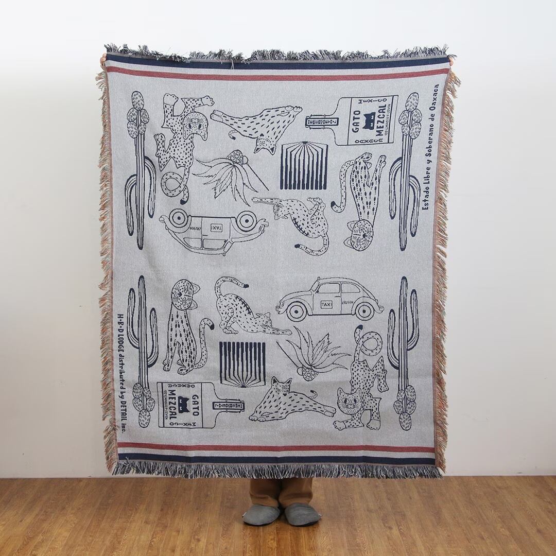オアハカ スローケット "キャット アンド モア" | 猫モチーフの通年使える大判ブランケット