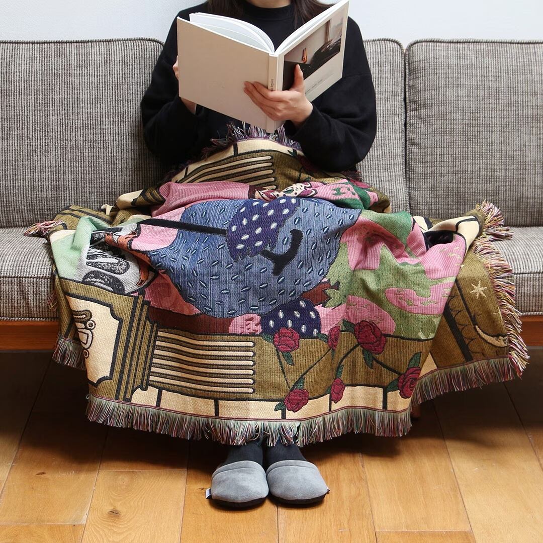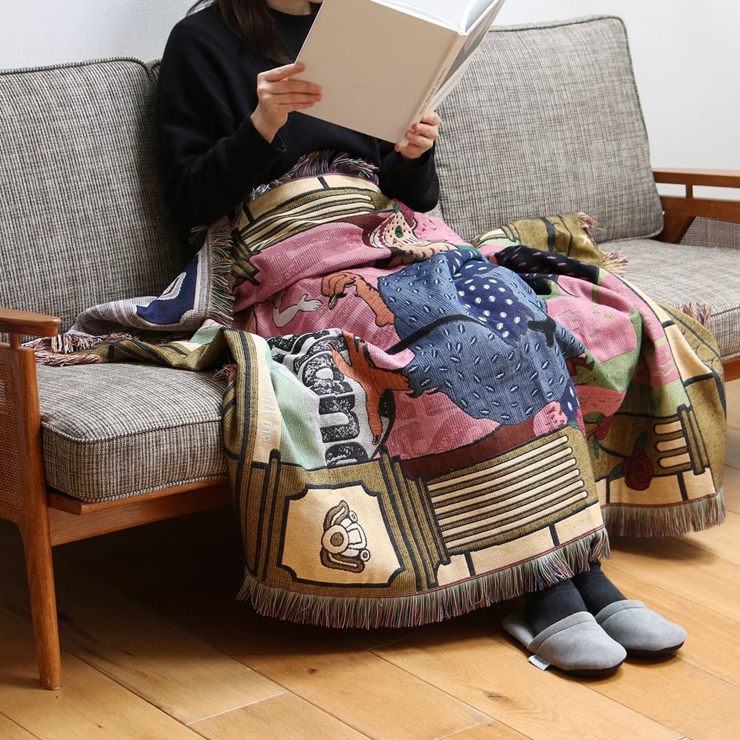 ソファやベッドにさらりと掛けて、肩から羽織れる大判サイズは膝掛けとして、鮮やかな色合いを活かしてタペストリーのように壁面アートとしてなど、様々なシーンでお部屋を彩ってくれます。