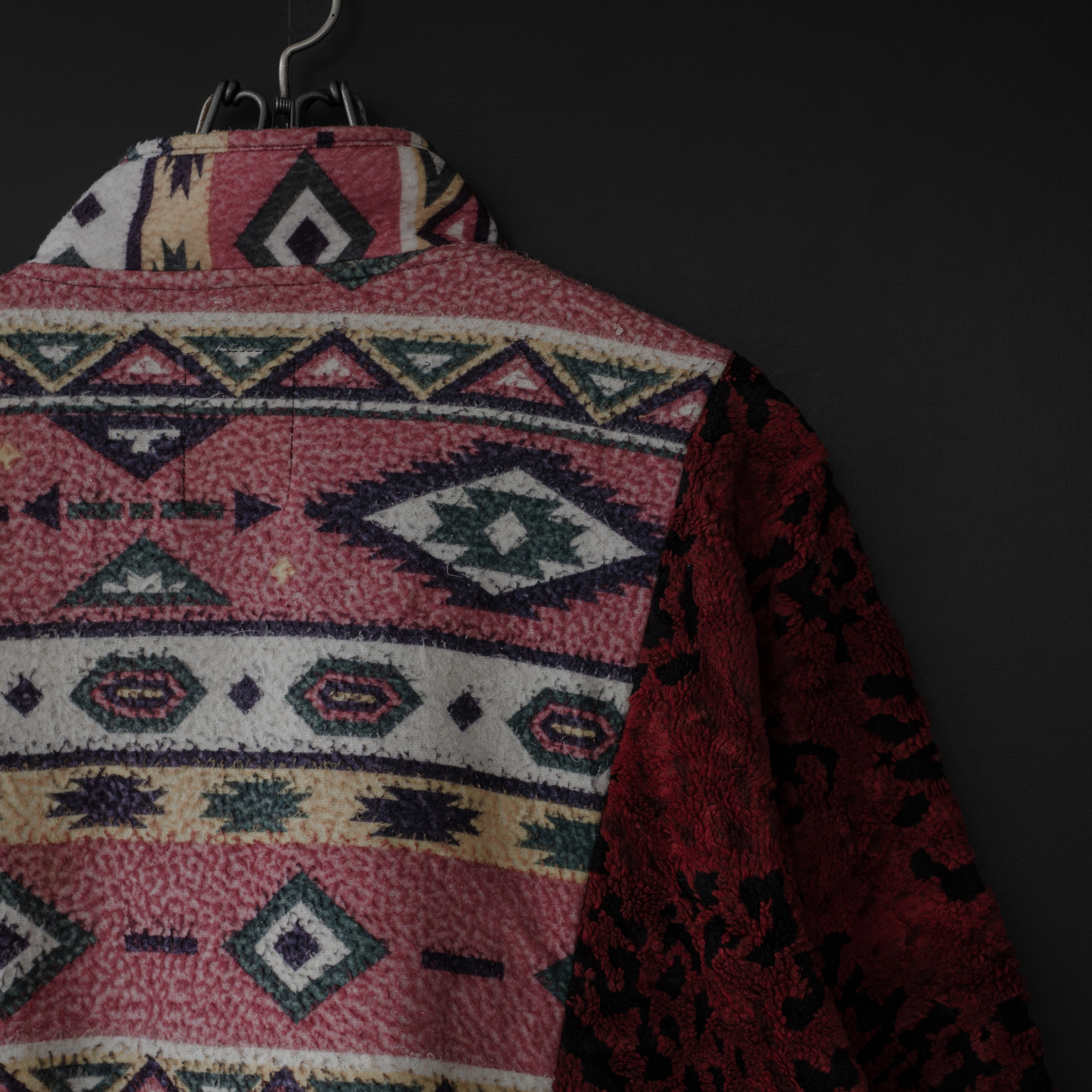 古着のコーデュロイウェアをフリースウェアを解体してハーフジップジャケットにリメイク。