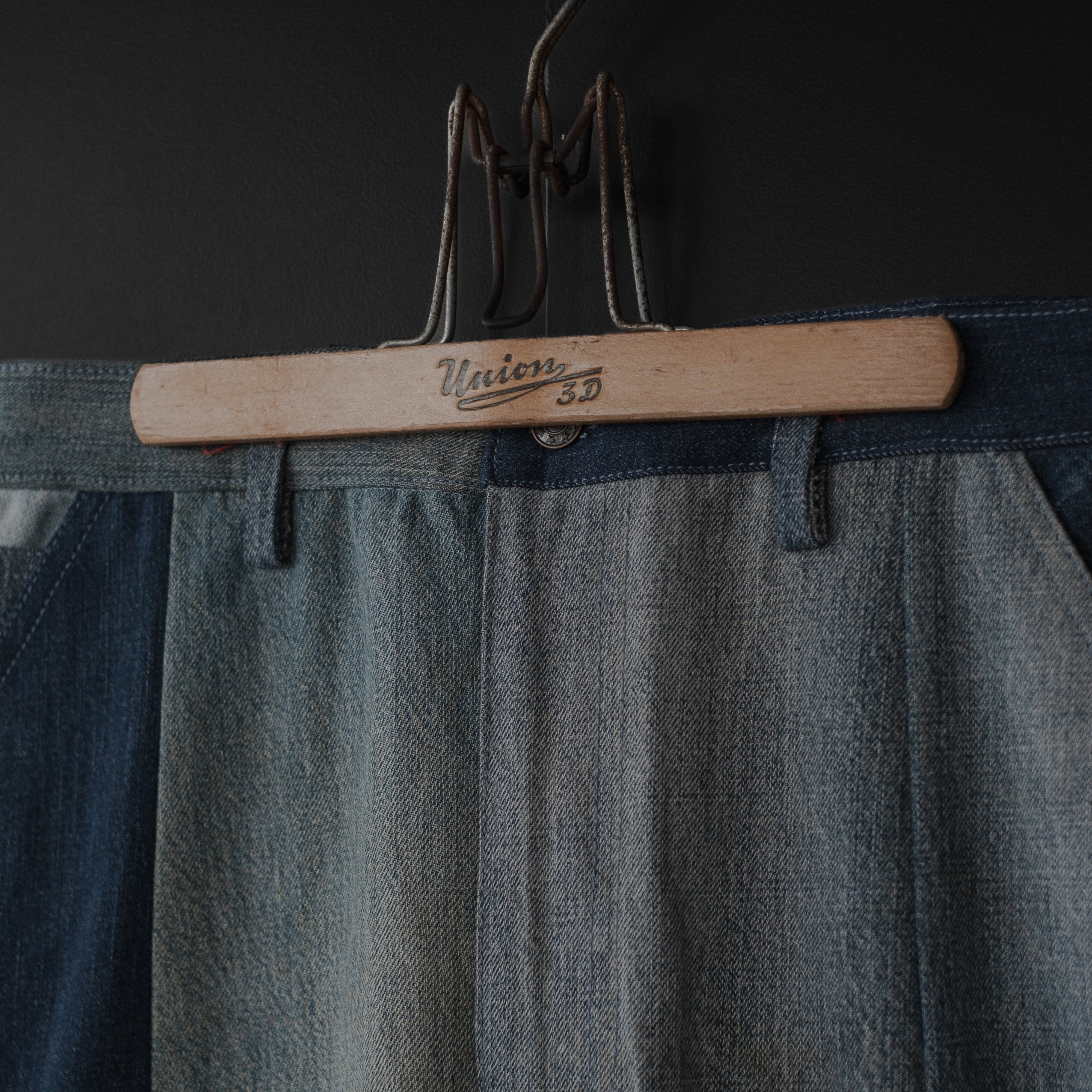 古着のデニムウェアを解体、パンツにリメイク。