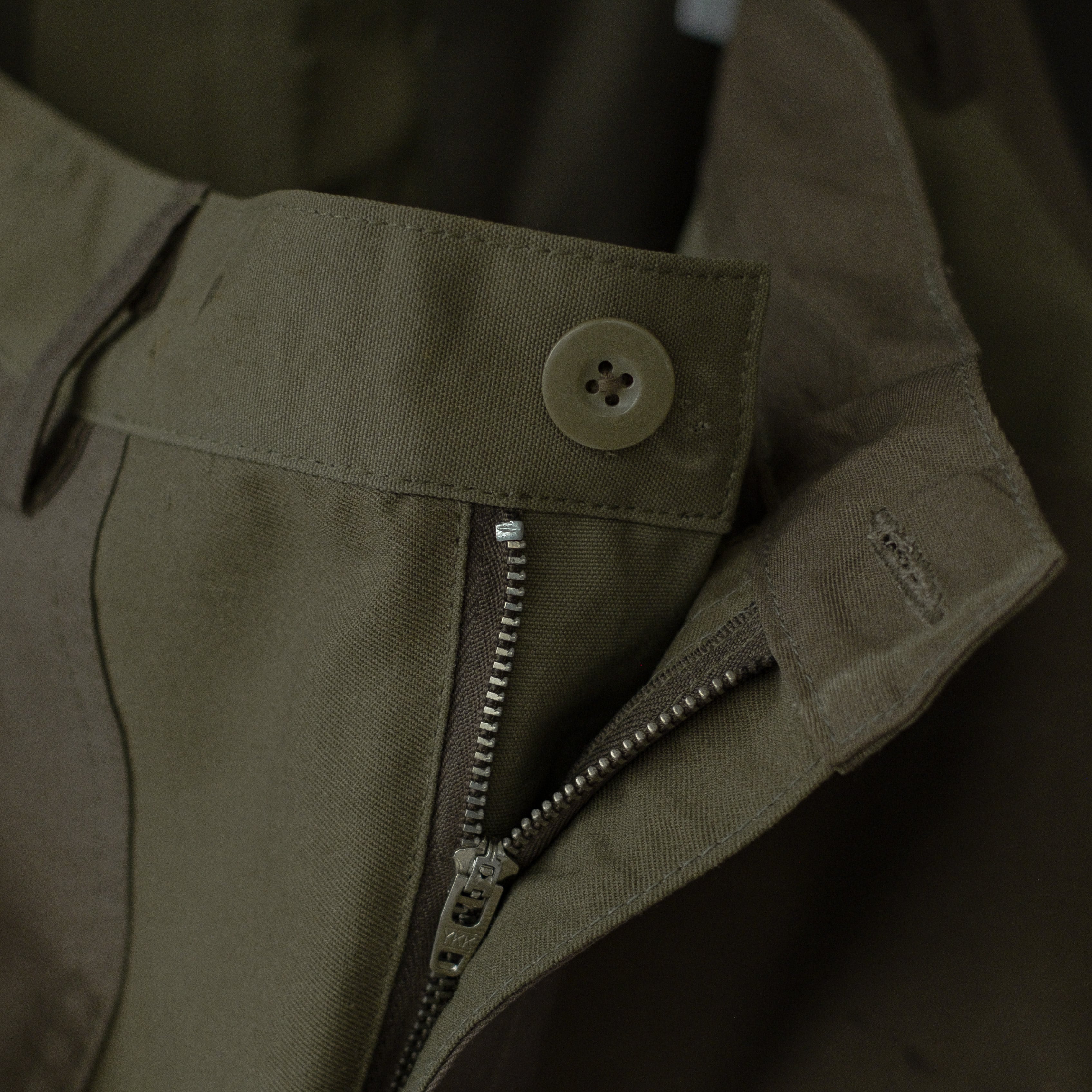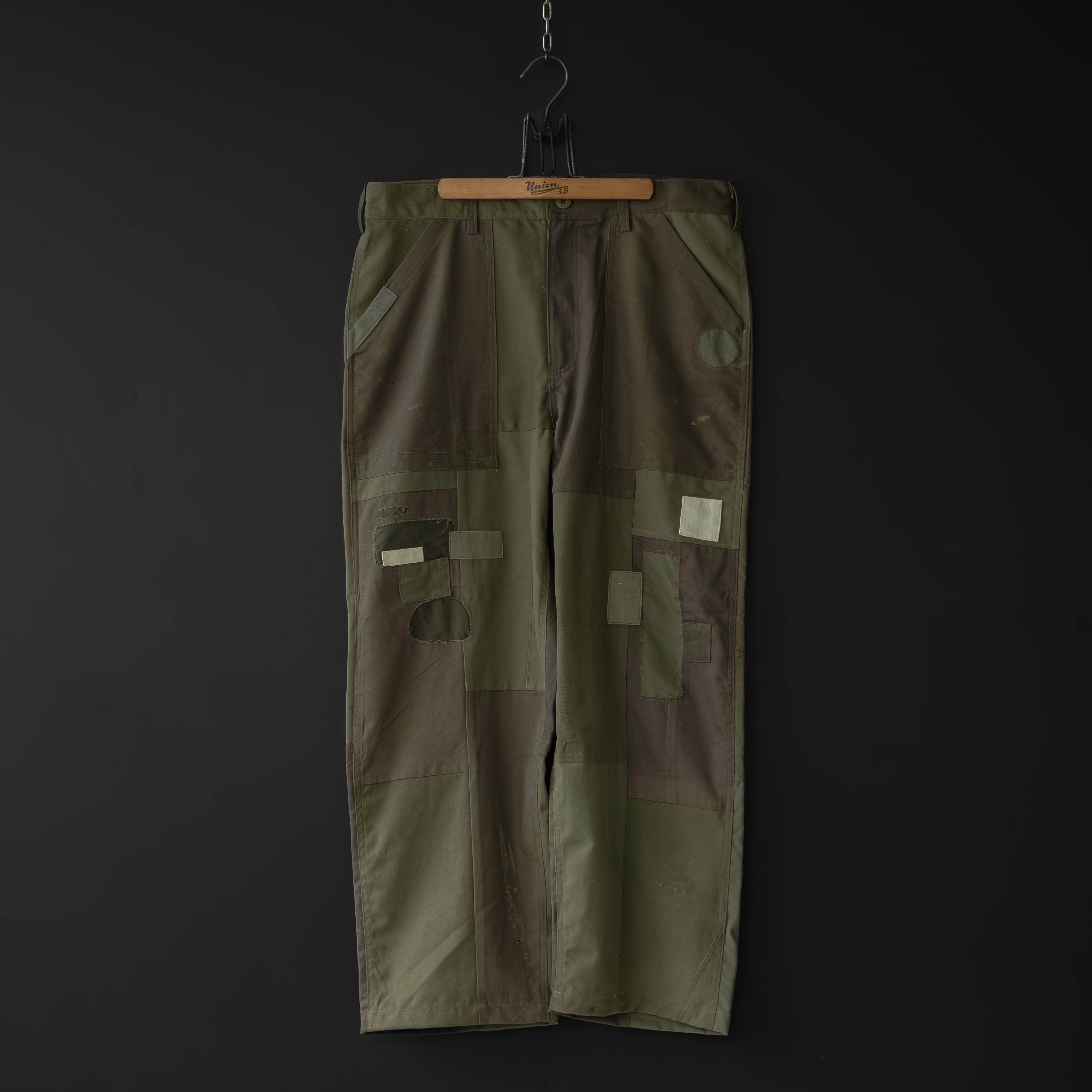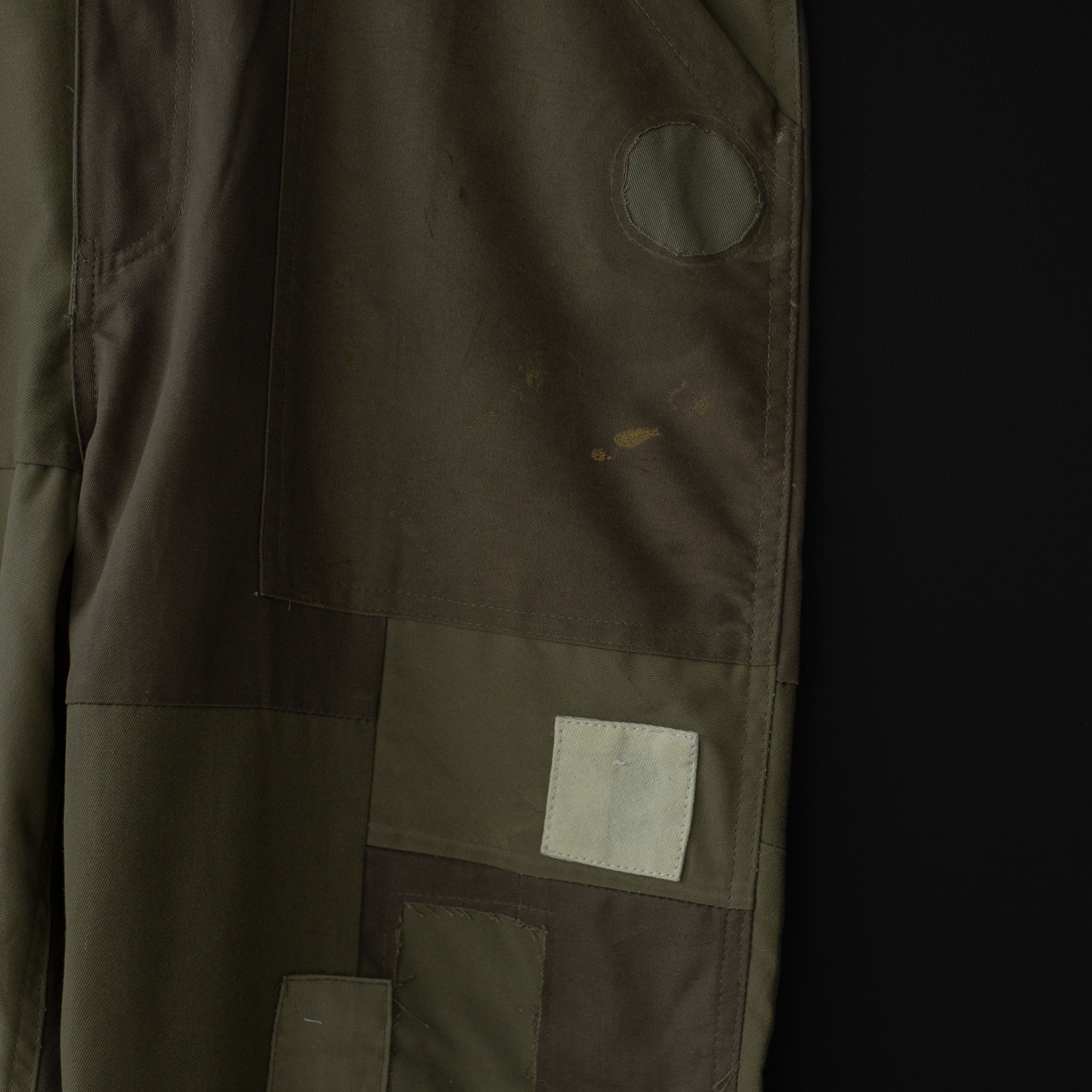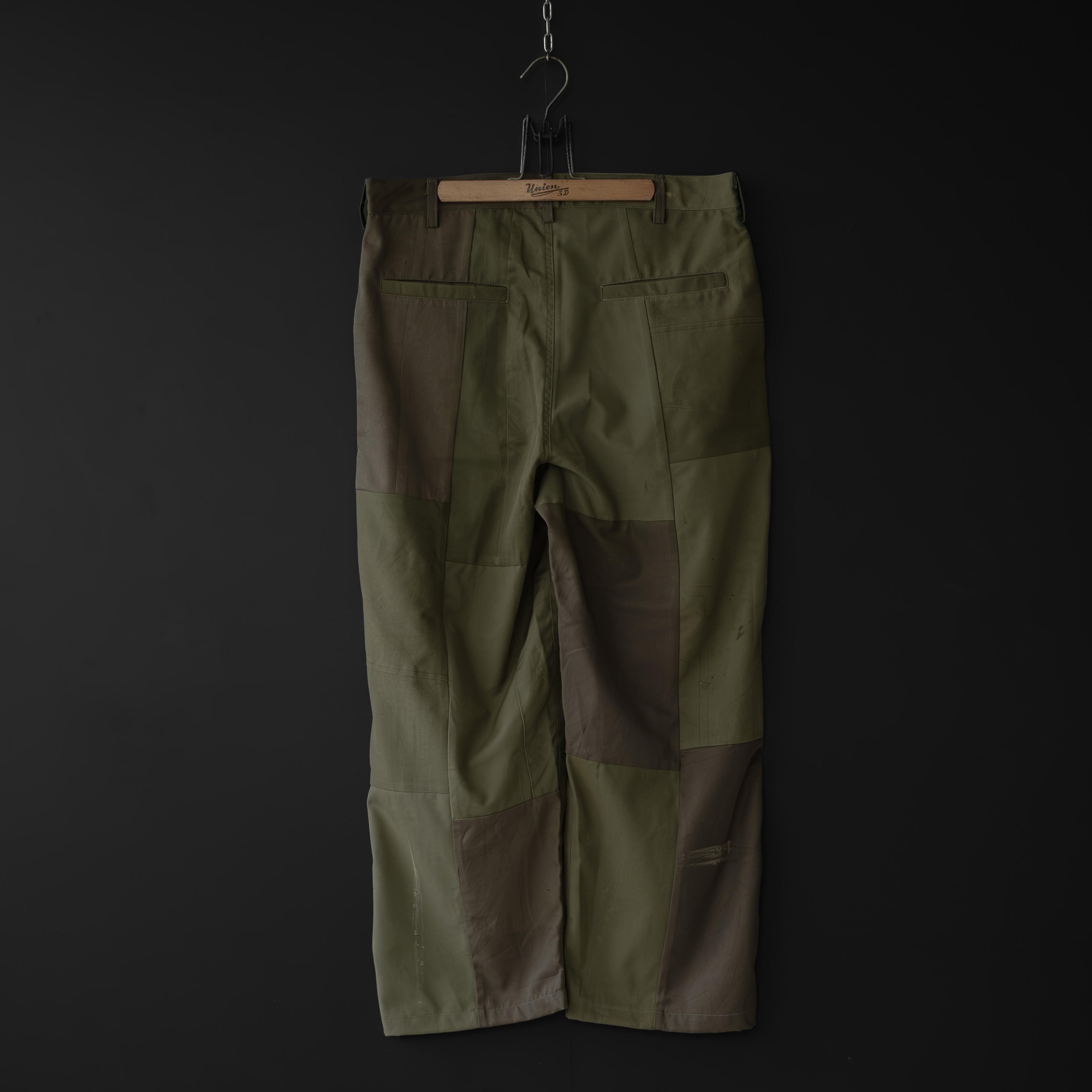 古着のミリタリーウェアを解体、パンツにリメイク。