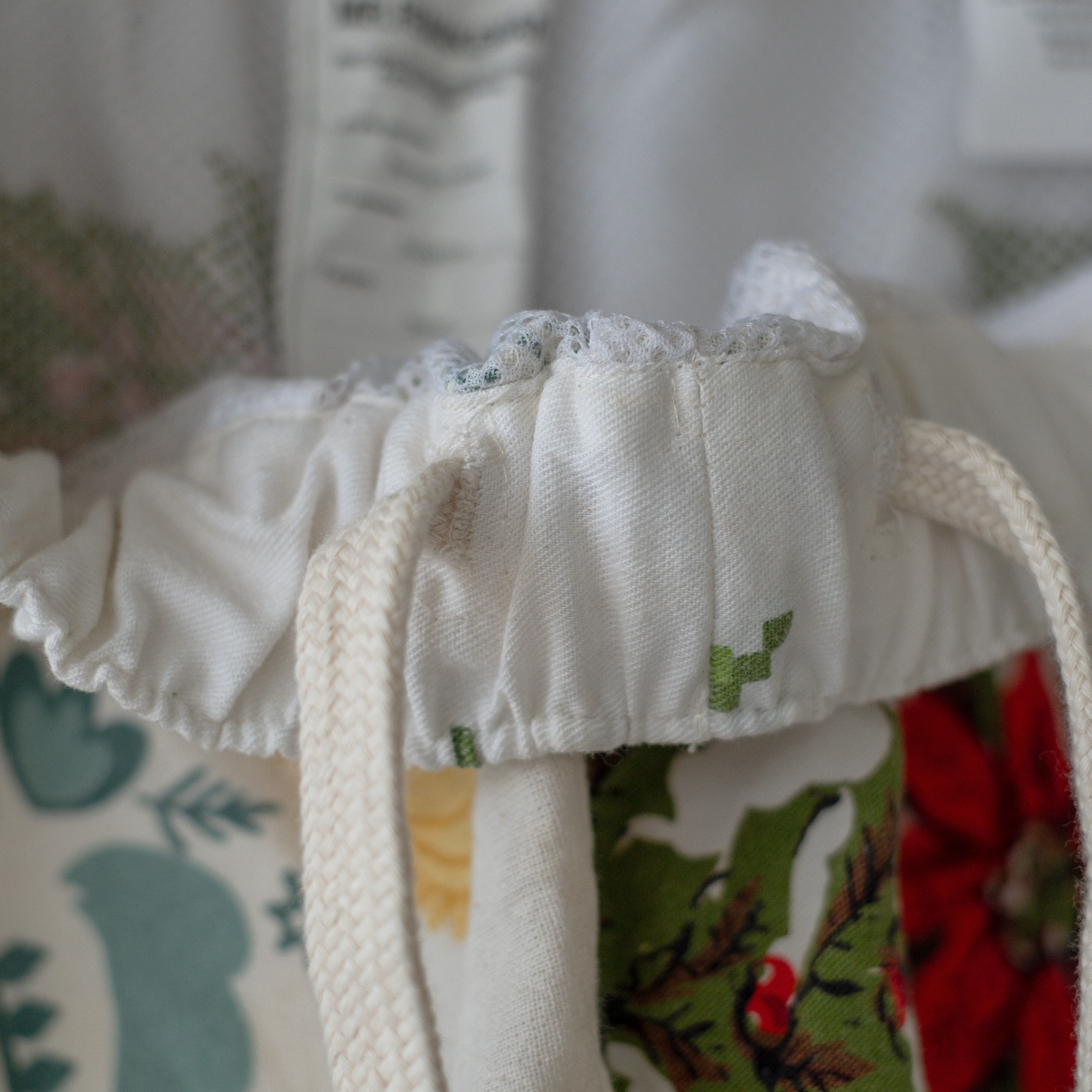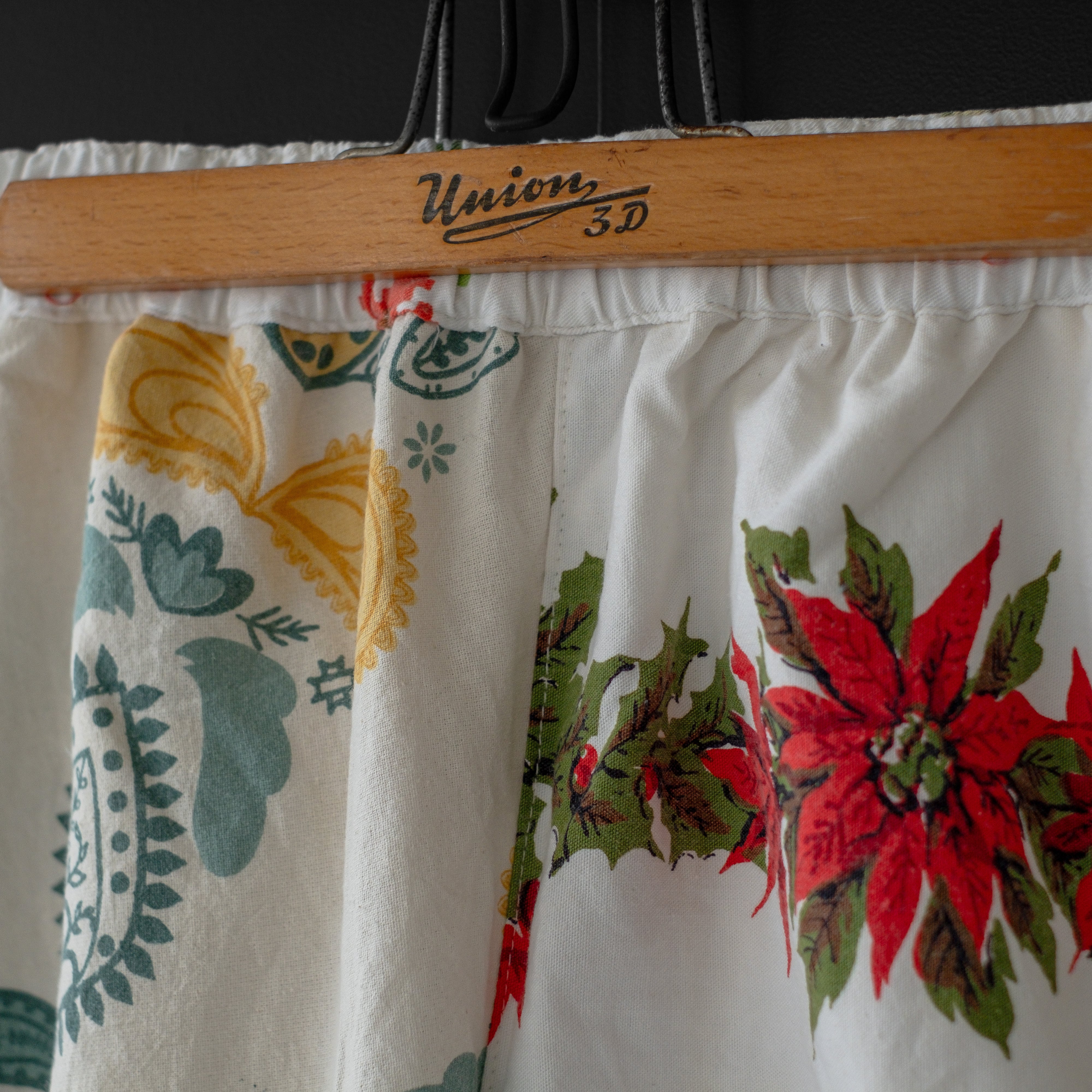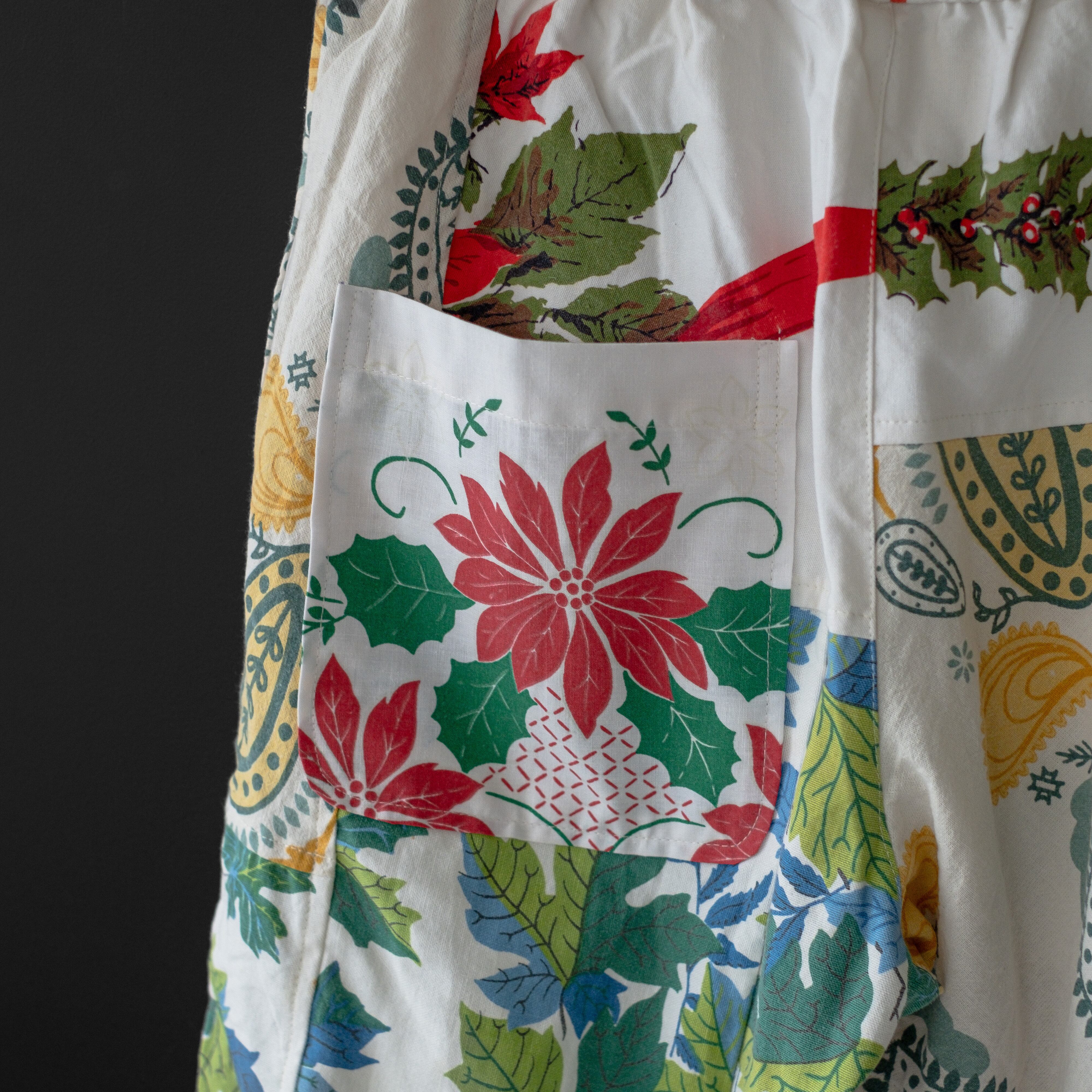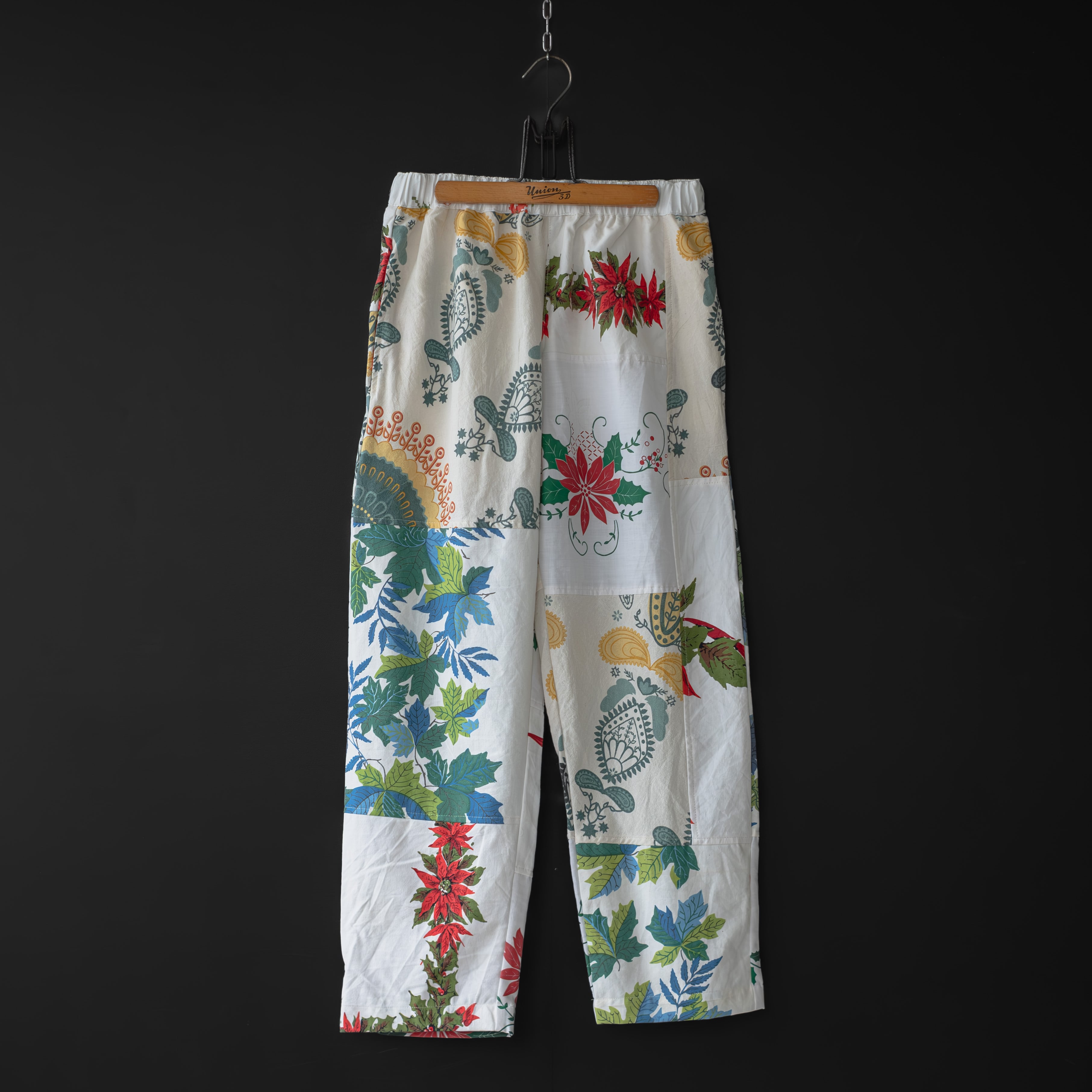 ユーズドの北欧のテーブルクロスを解体、リメイクし、イージーパンツに。