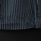 深みのあるネイビーにピンストライプの少しリゾート感もある一本。