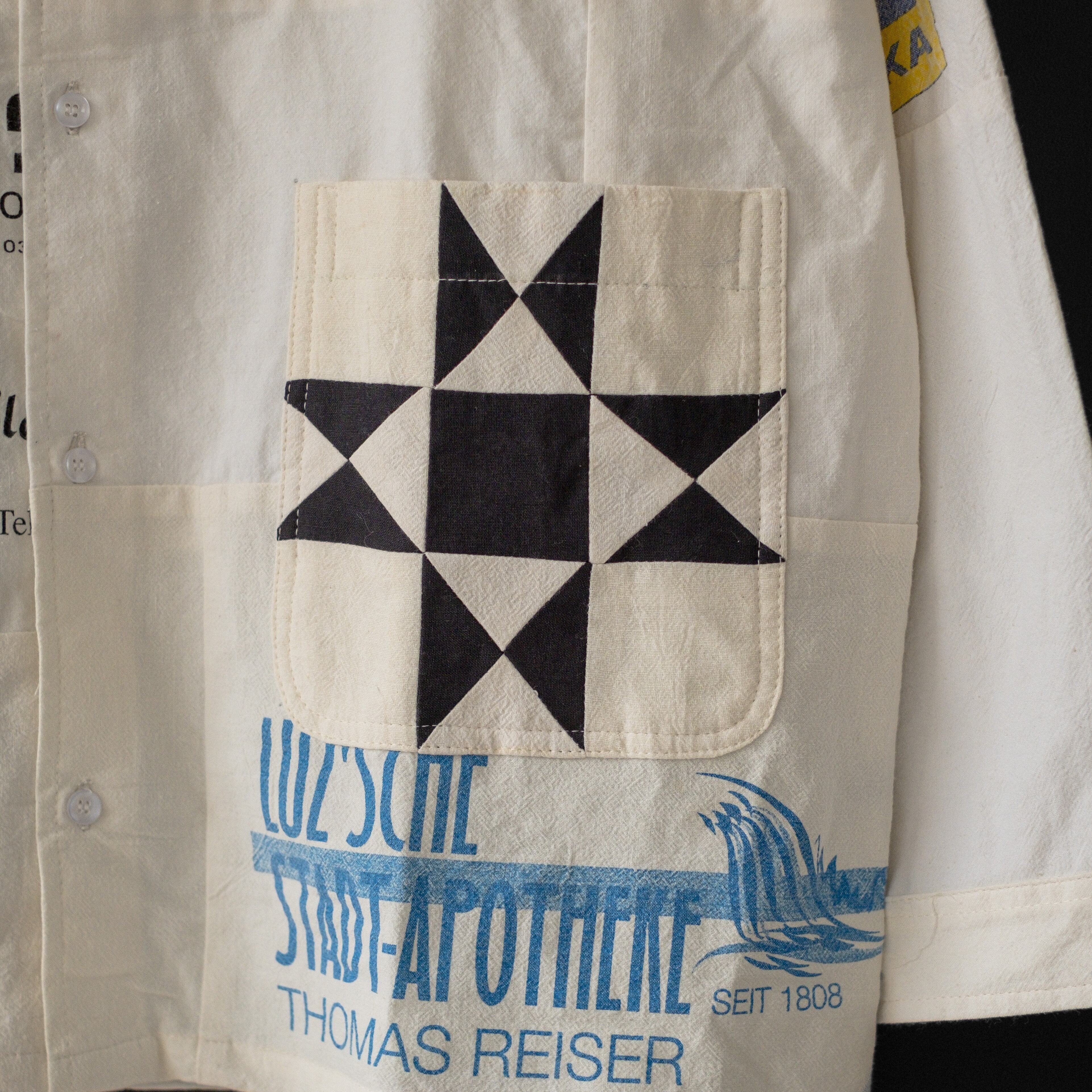 古着のタペストリーを解体、リメイクし、ジャケットに。
