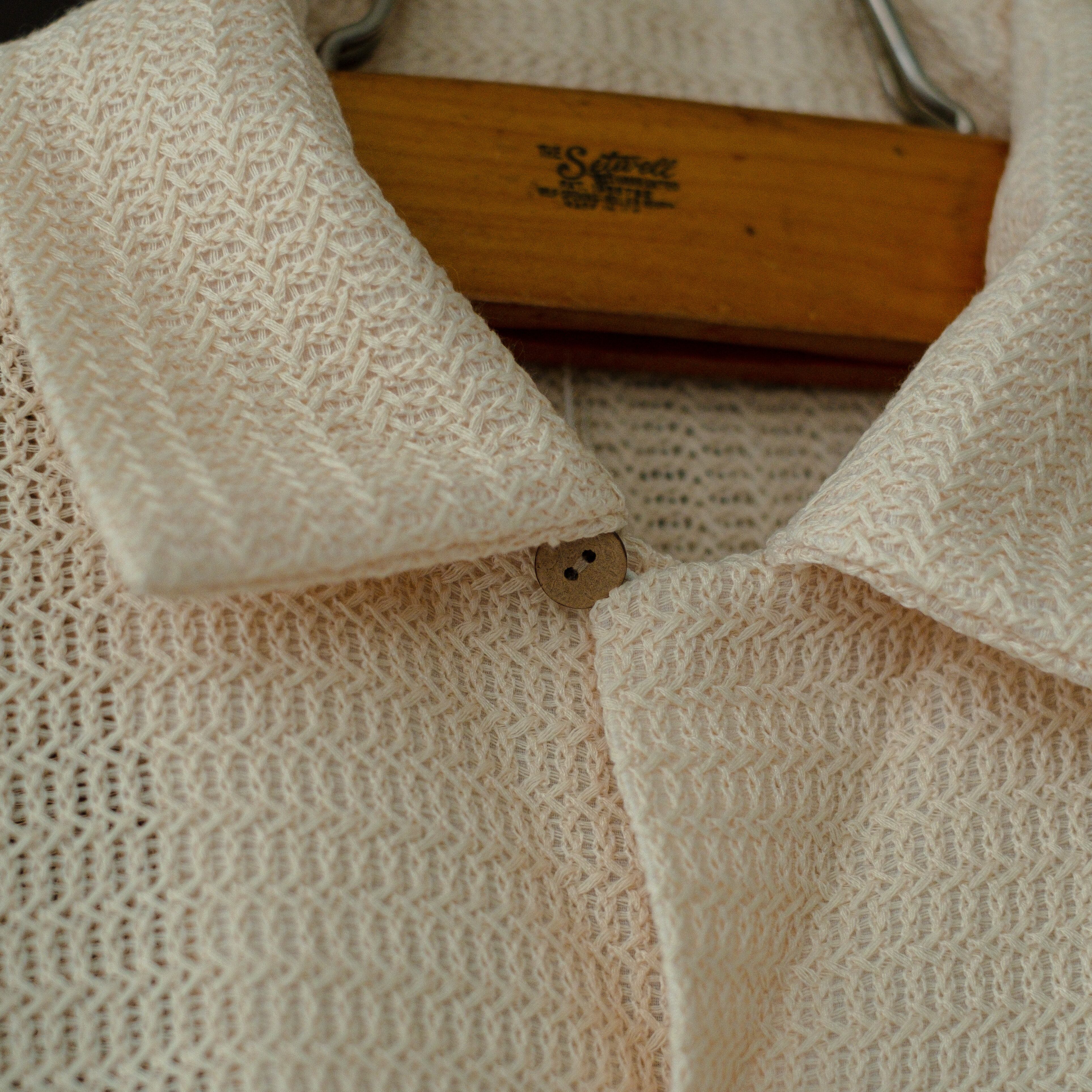 かぎ針編み素材のシャツ。
