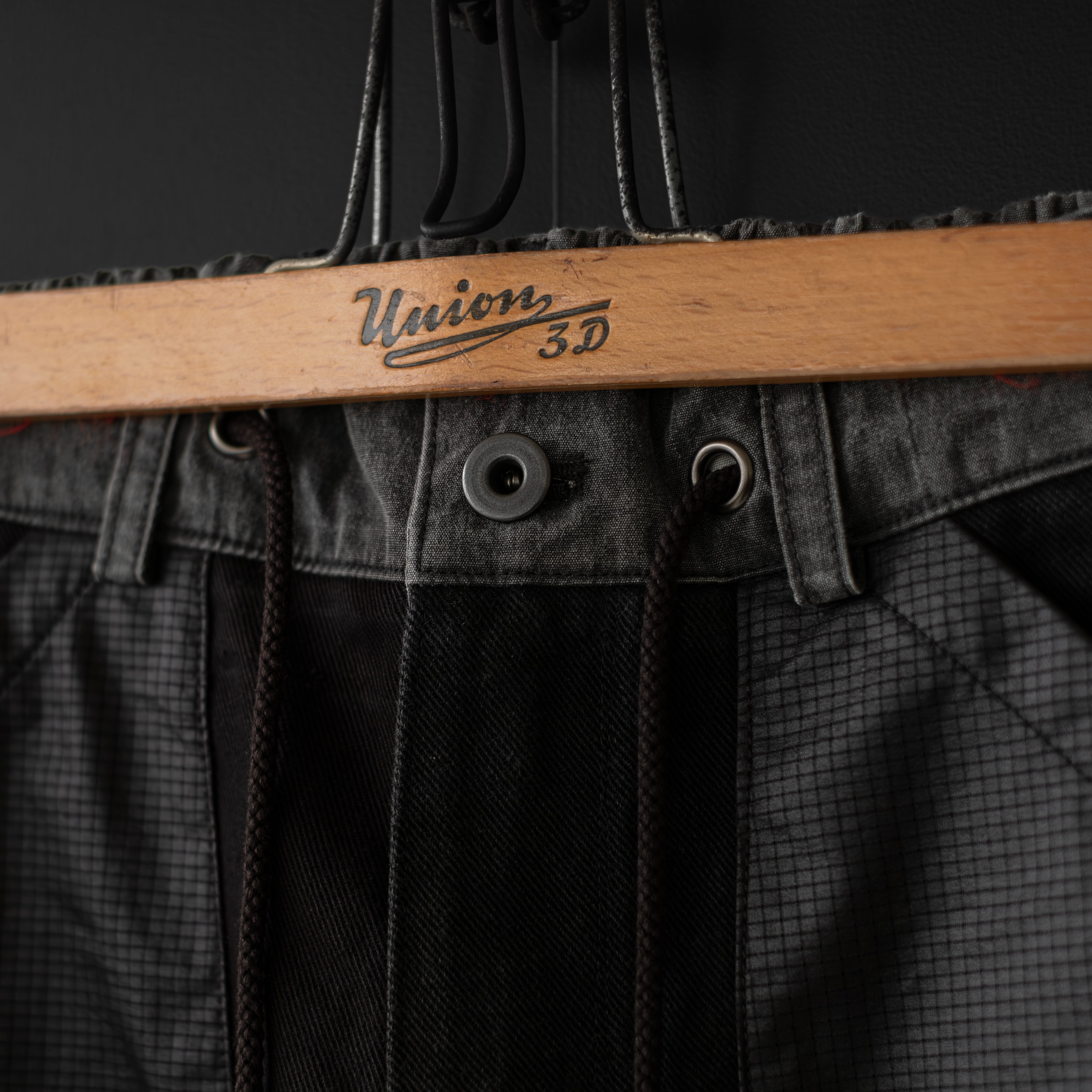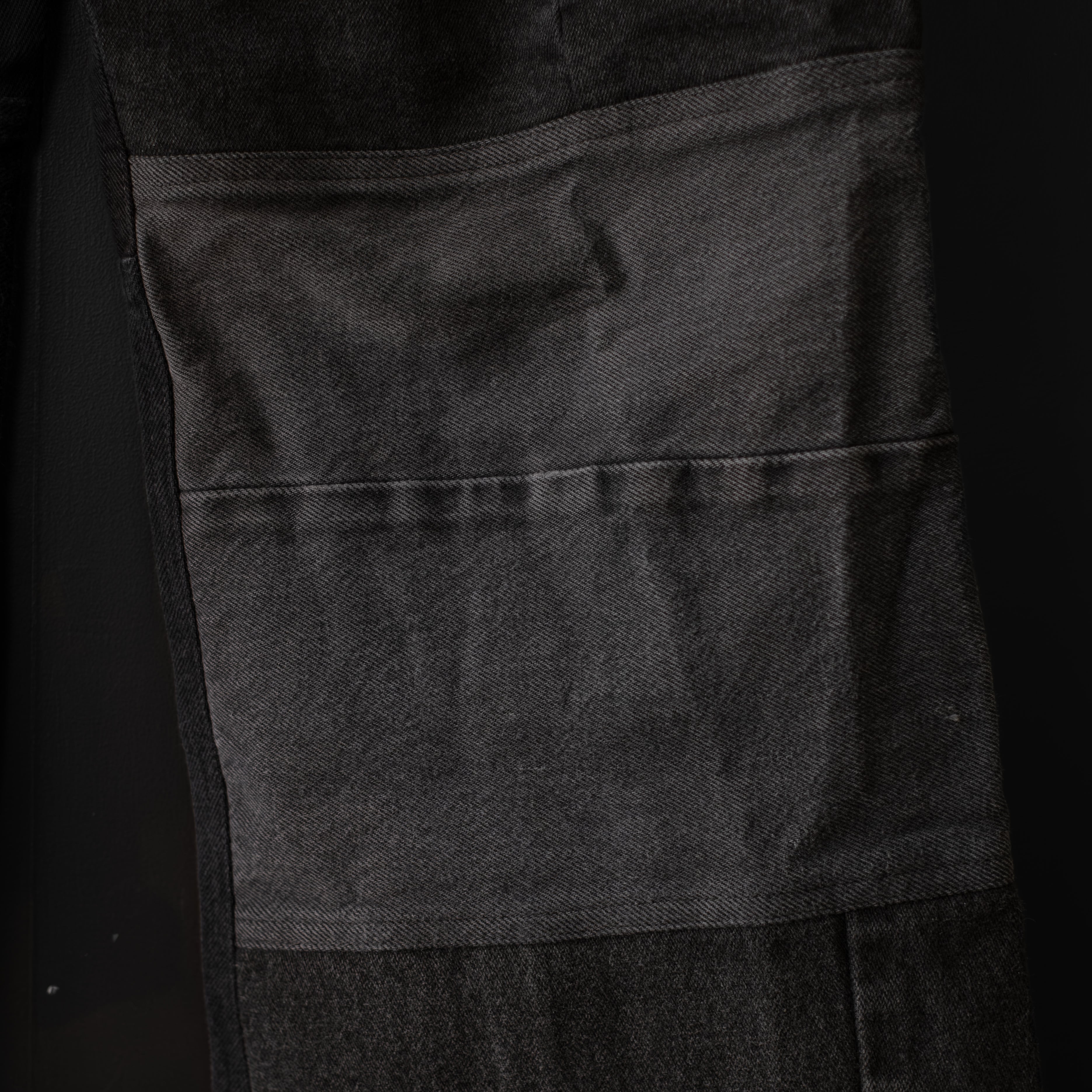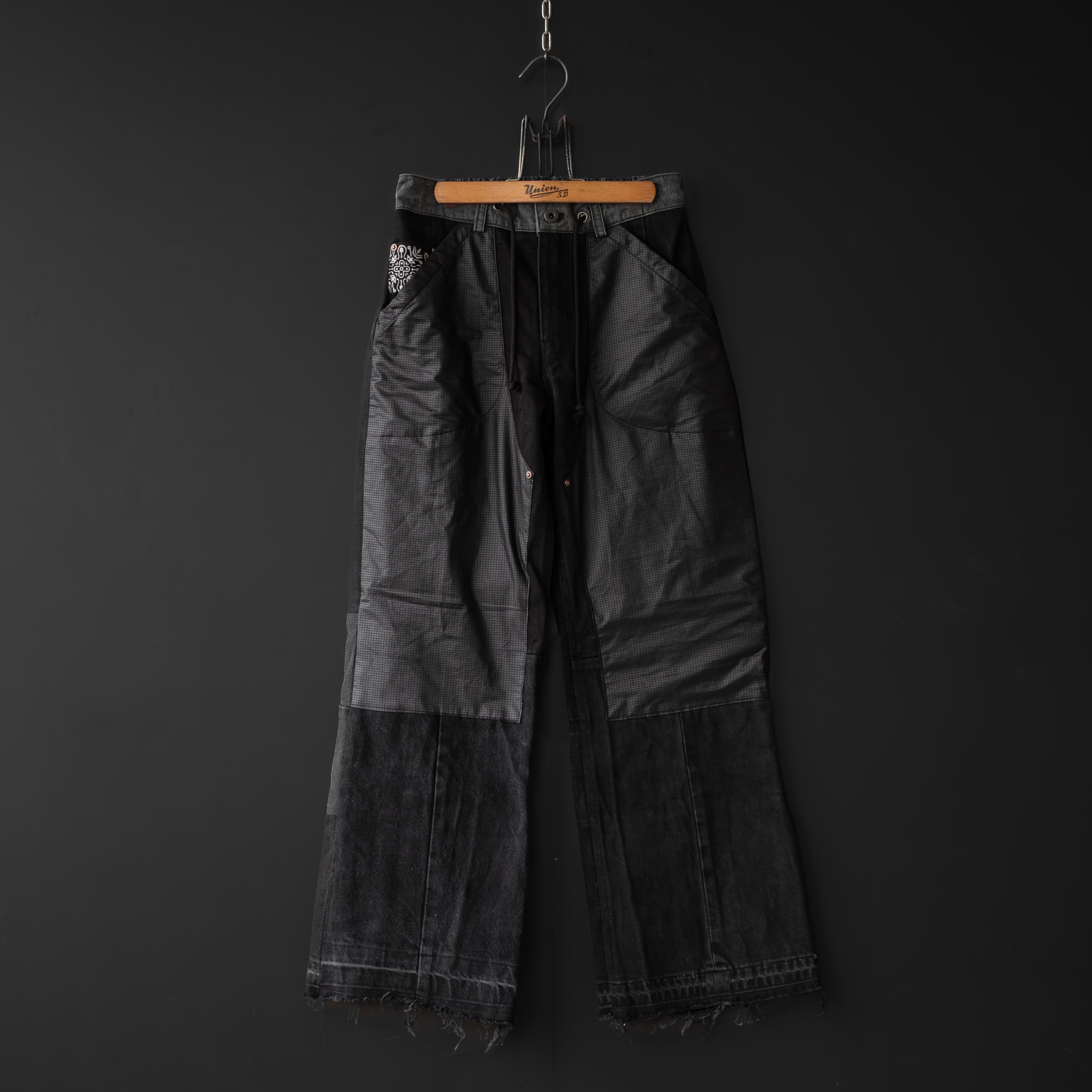 USEDのデニムパンツを解体+再構築したブーツカットパンツ。