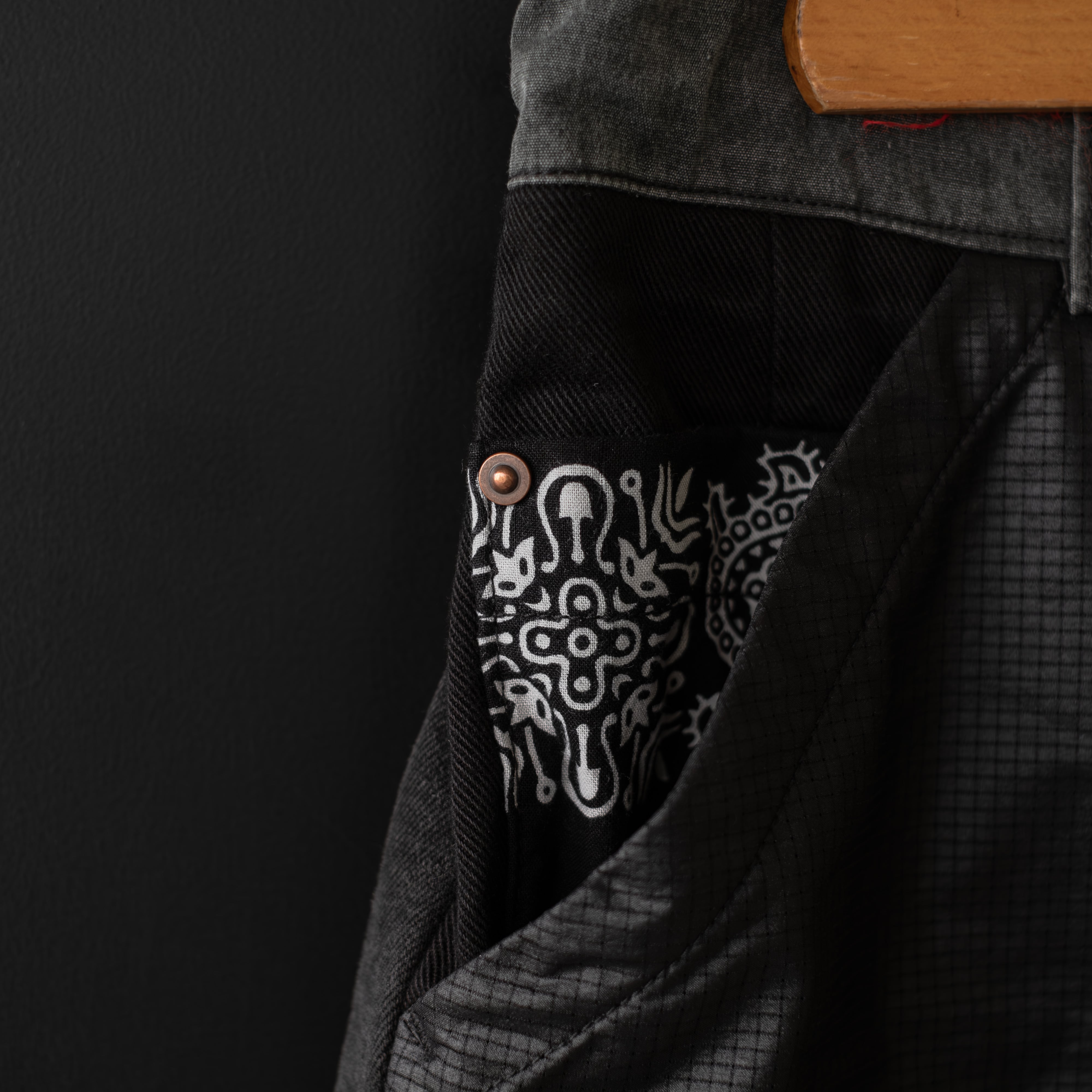 裾カットオフ部分のアタリやUSEDデニムでしか出せない”VINTAGE感”とCOOL DOTSの”近未来感”のハイブリットな融合をお楽しみください。