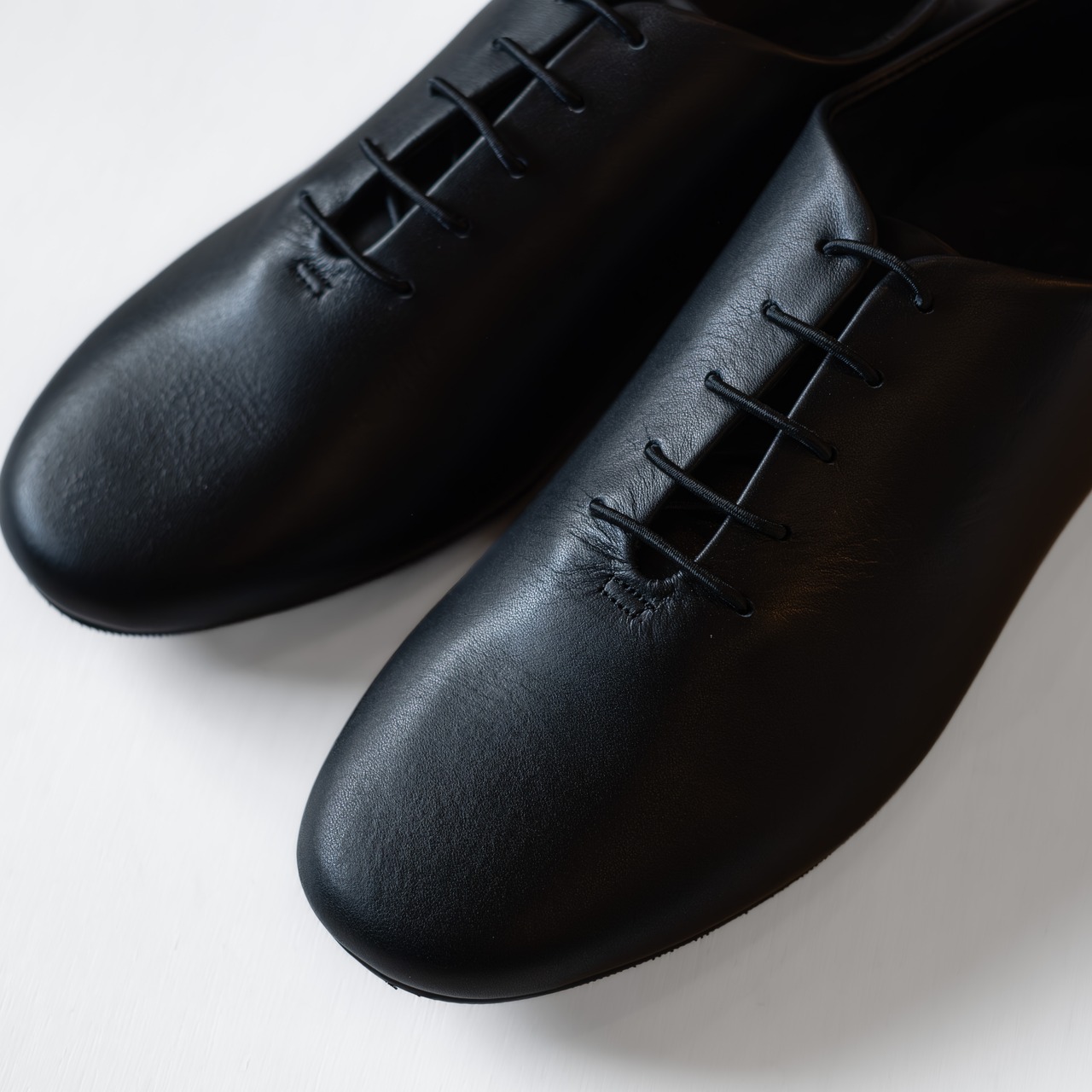 足に沿うタイトなシルエットでミニマルなデザインに仕上げ、軽やかさとモダンを両立したシューズです。