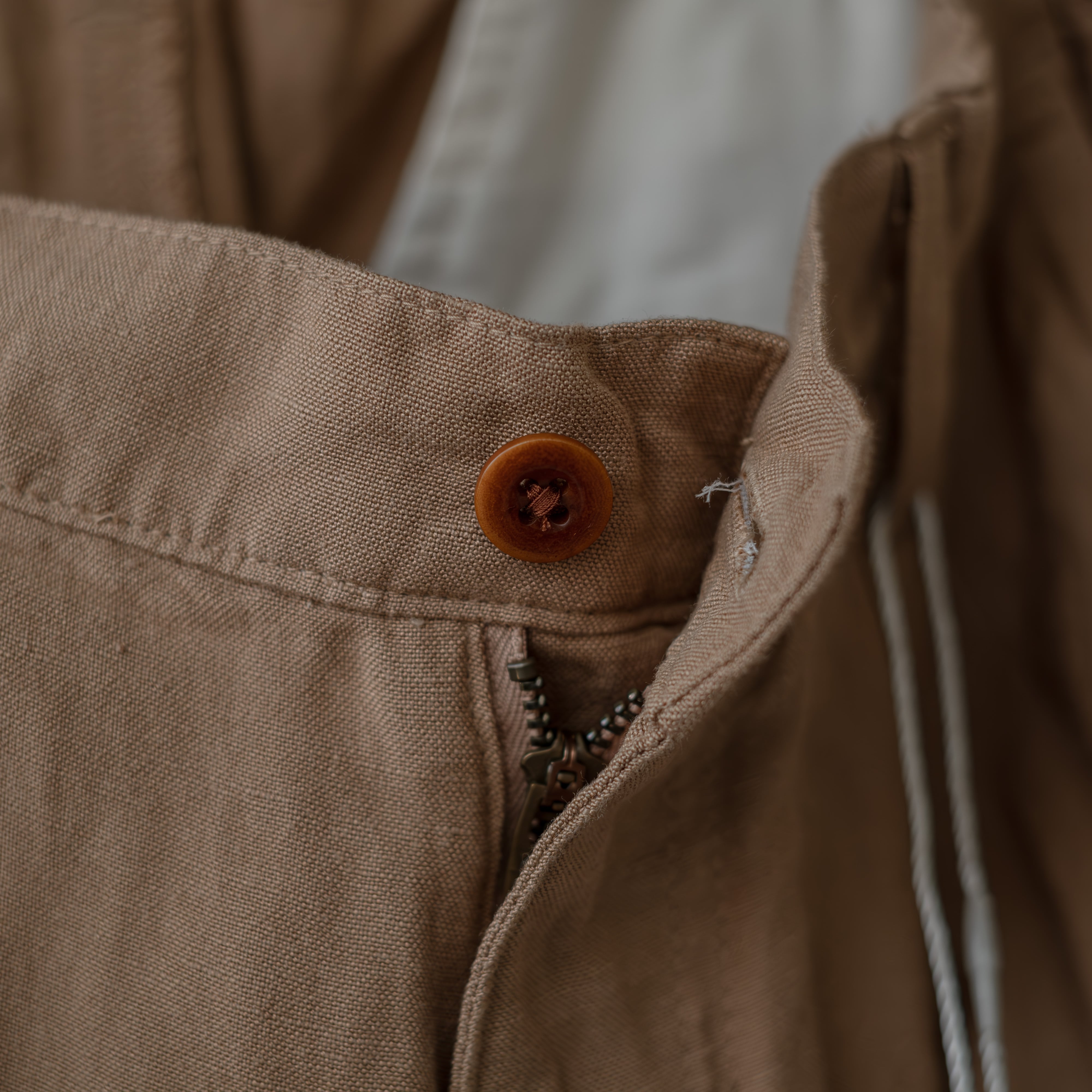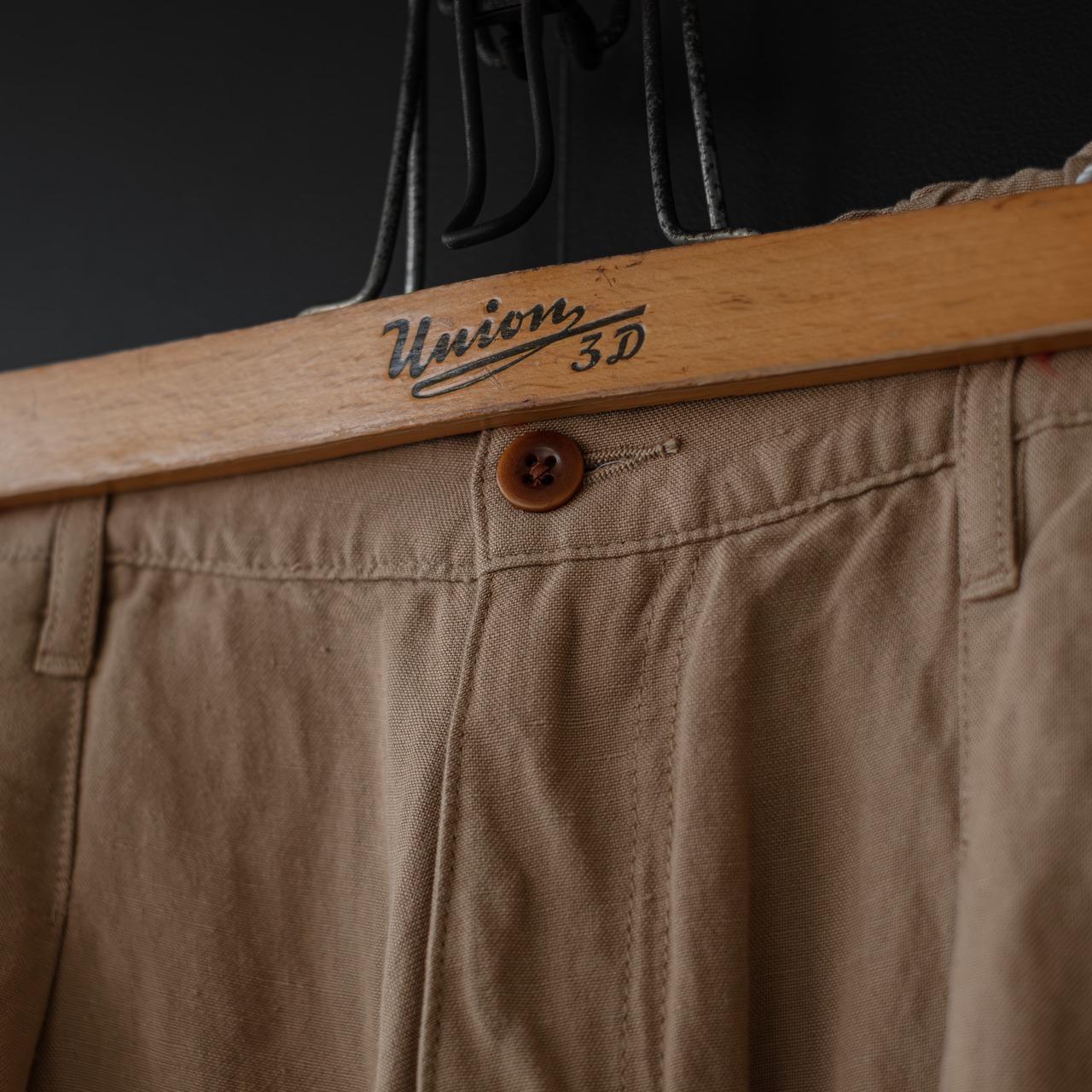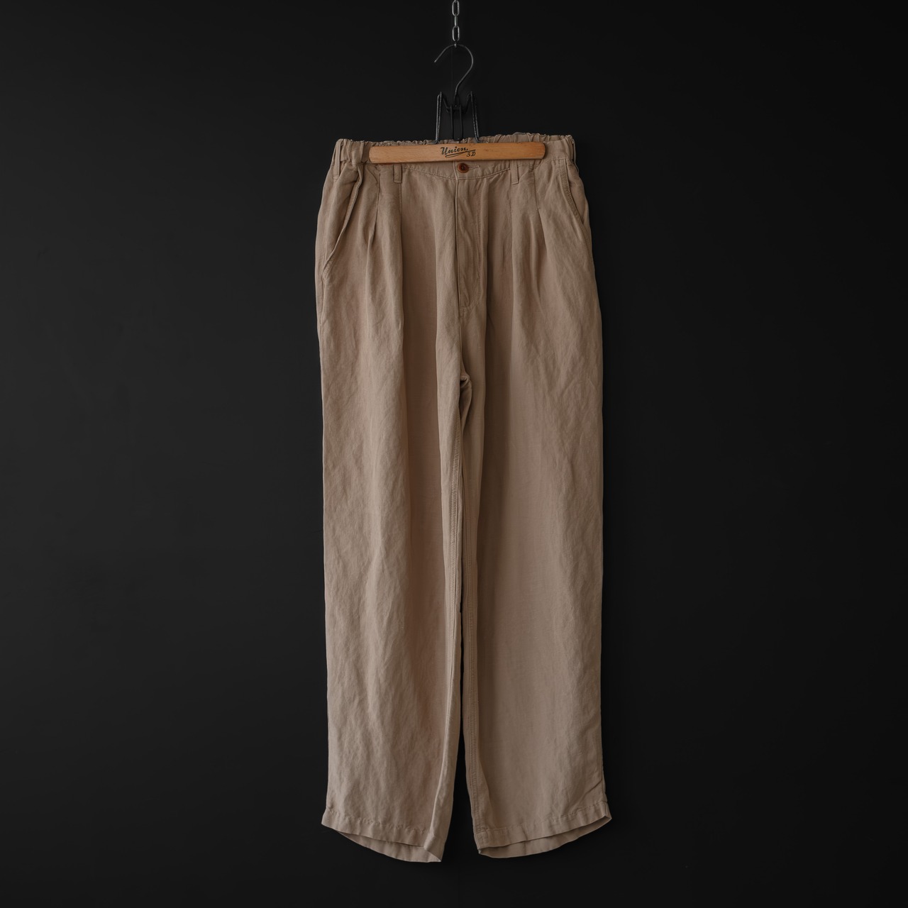 レーヨン×リネンのいい落ちのあるワイドパンツ。
