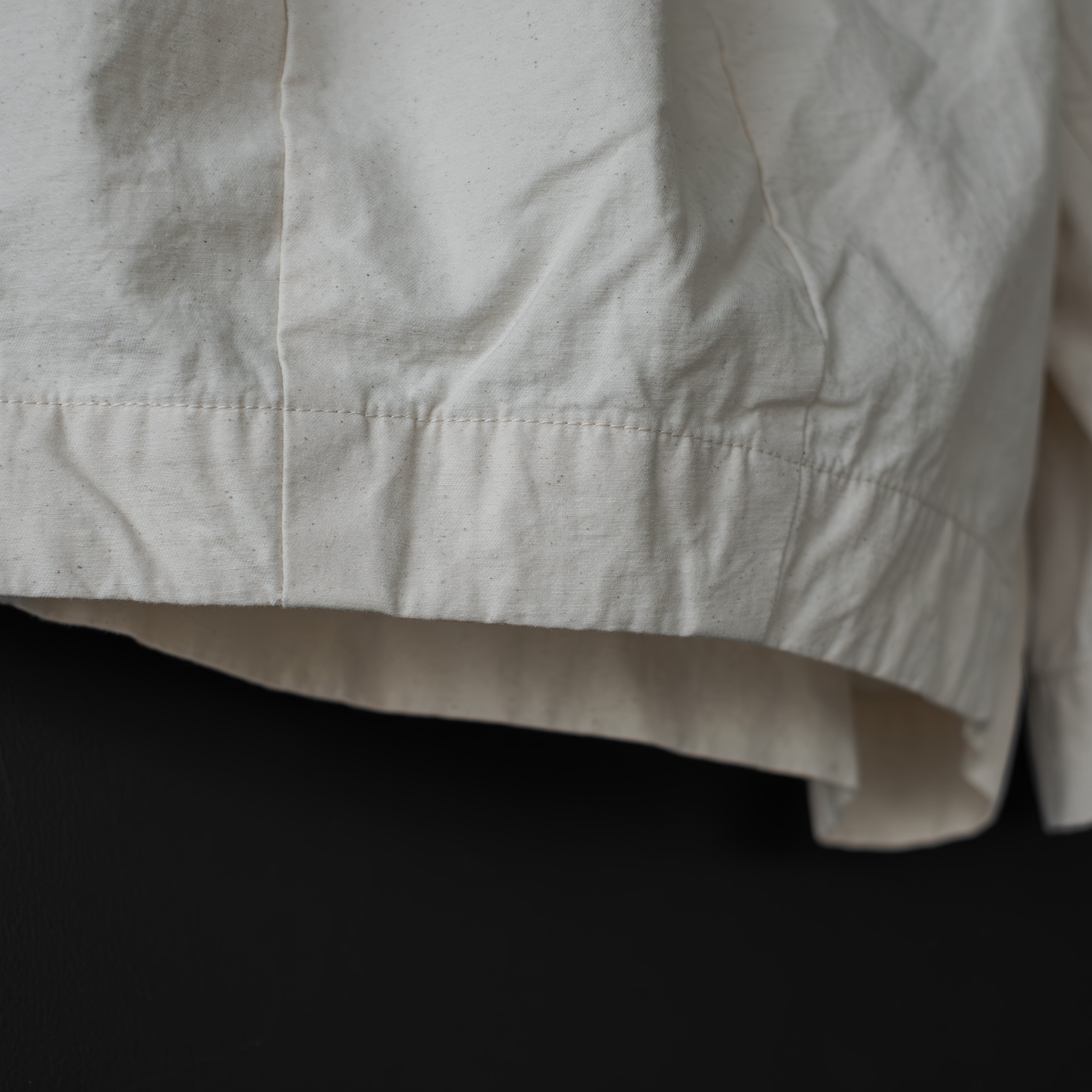 高密度に織られたツイル生地を顔料系の染料で染め上げた生地を使用したショートパンツ。