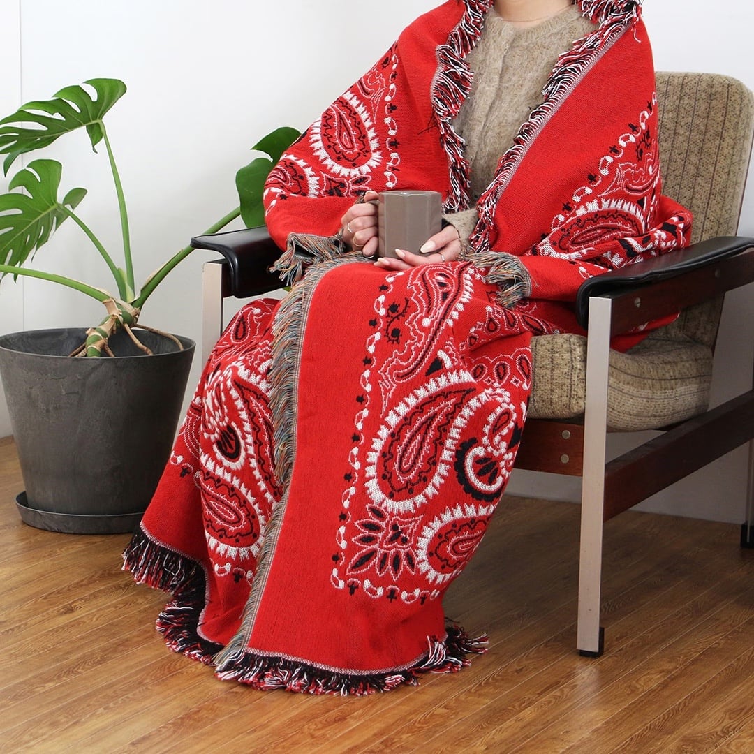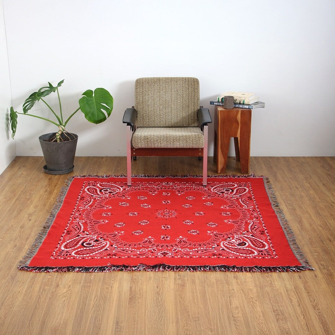 バンダナ スローケット " ペイズリー / レッド " | ラグマットとしても使える大判スローケット