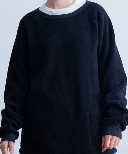 コーデュロイ地で裏起毛なので秋冬に使いやすい1枚。
