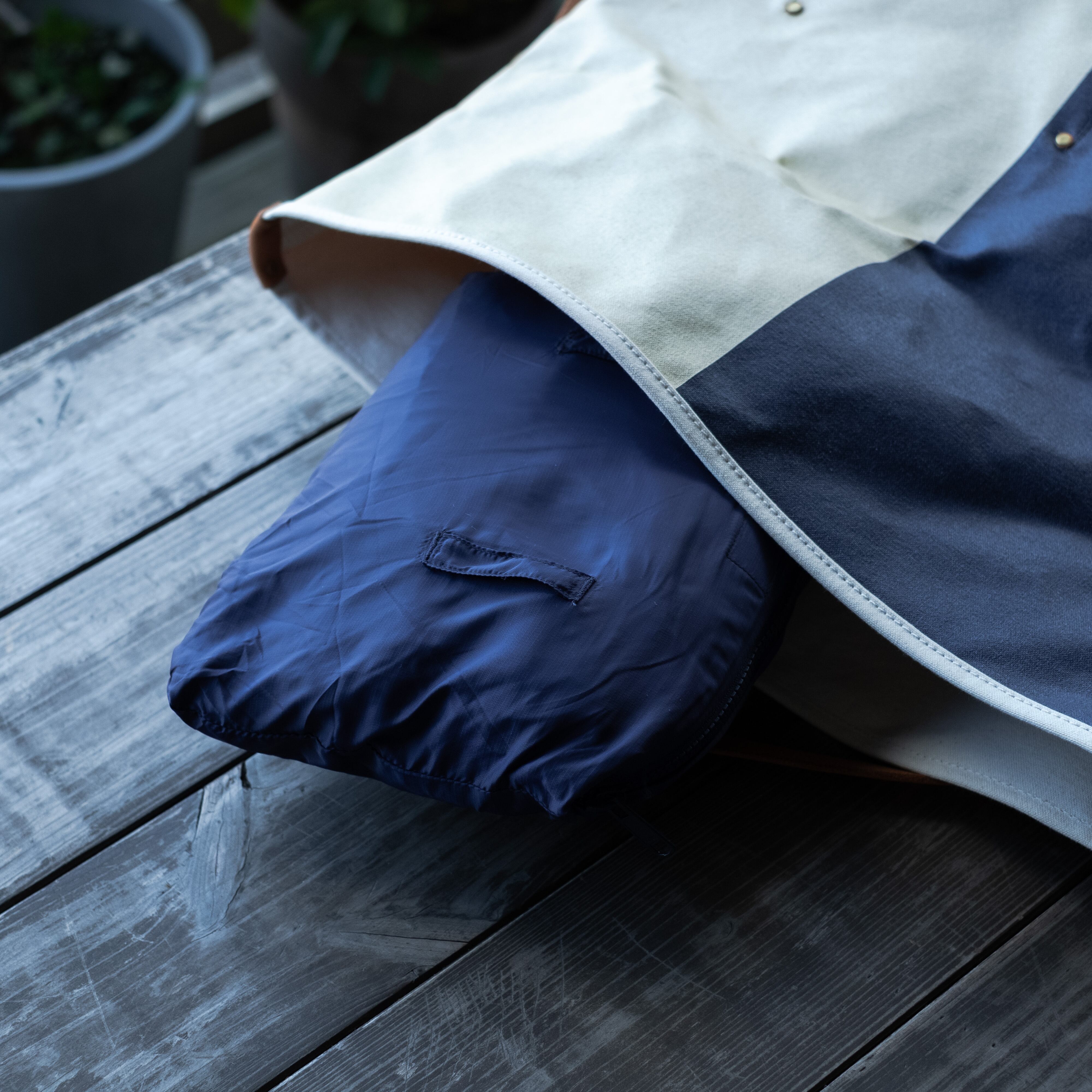 表地にはクラシックな印象のコットンライクナイロンを使用。