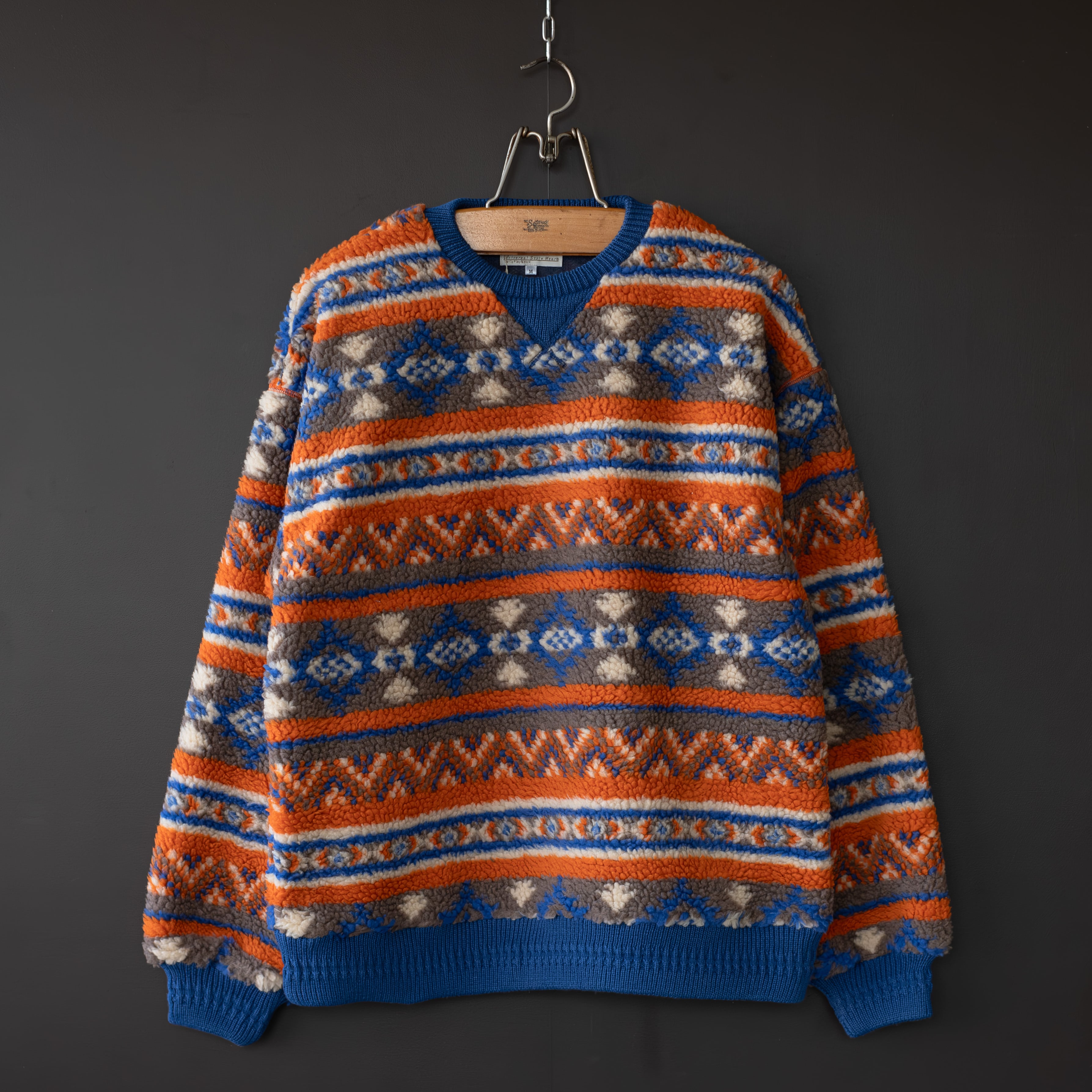 インパクト大のエスニック総柄のボアを使用したクルーネックです。