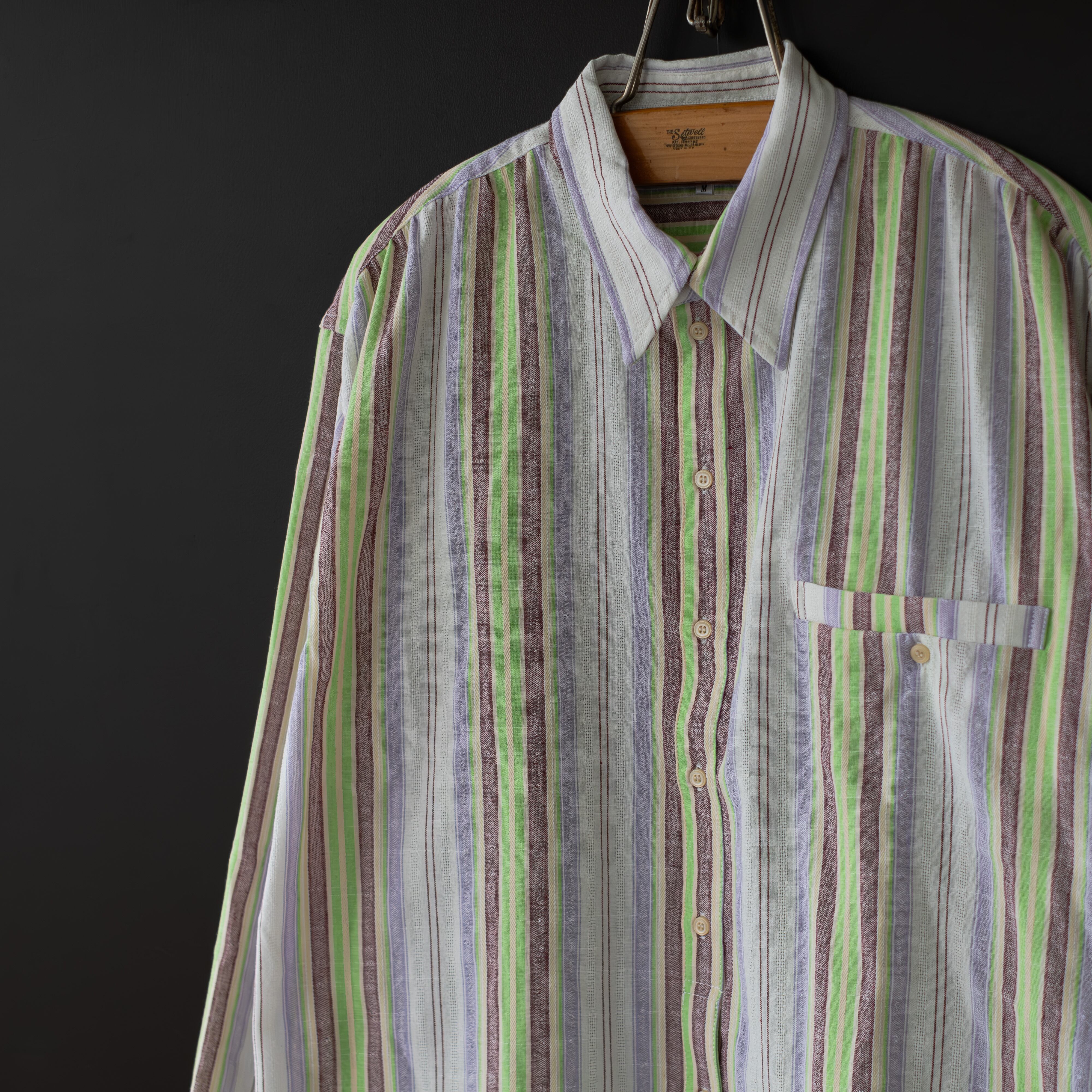 【Universal Style Wear】 puckering stripe shirt (iyory type)