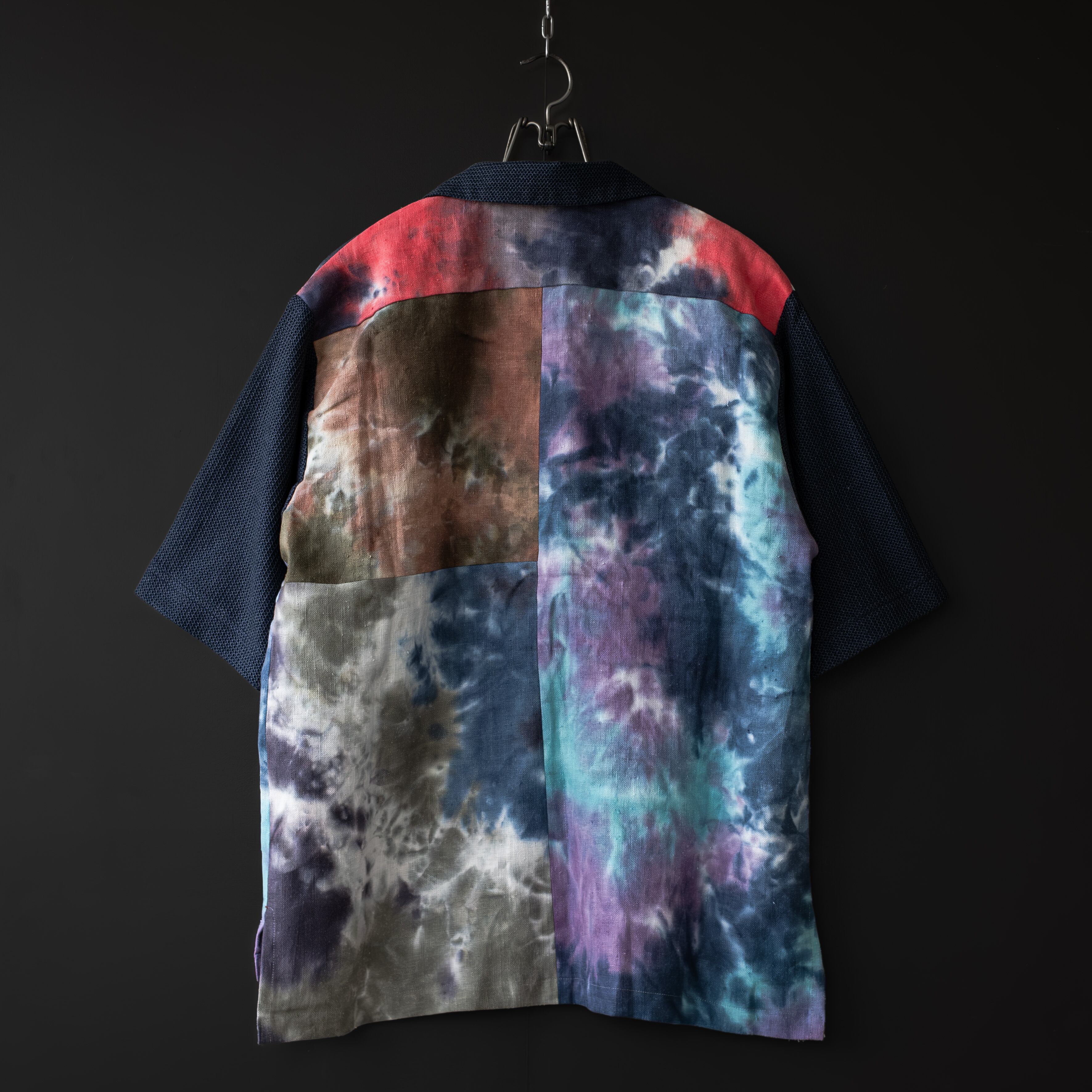 タイダイ染めと綿ニットを掛け合わせチャイナボタンがアクセントになった開襟シャツ。