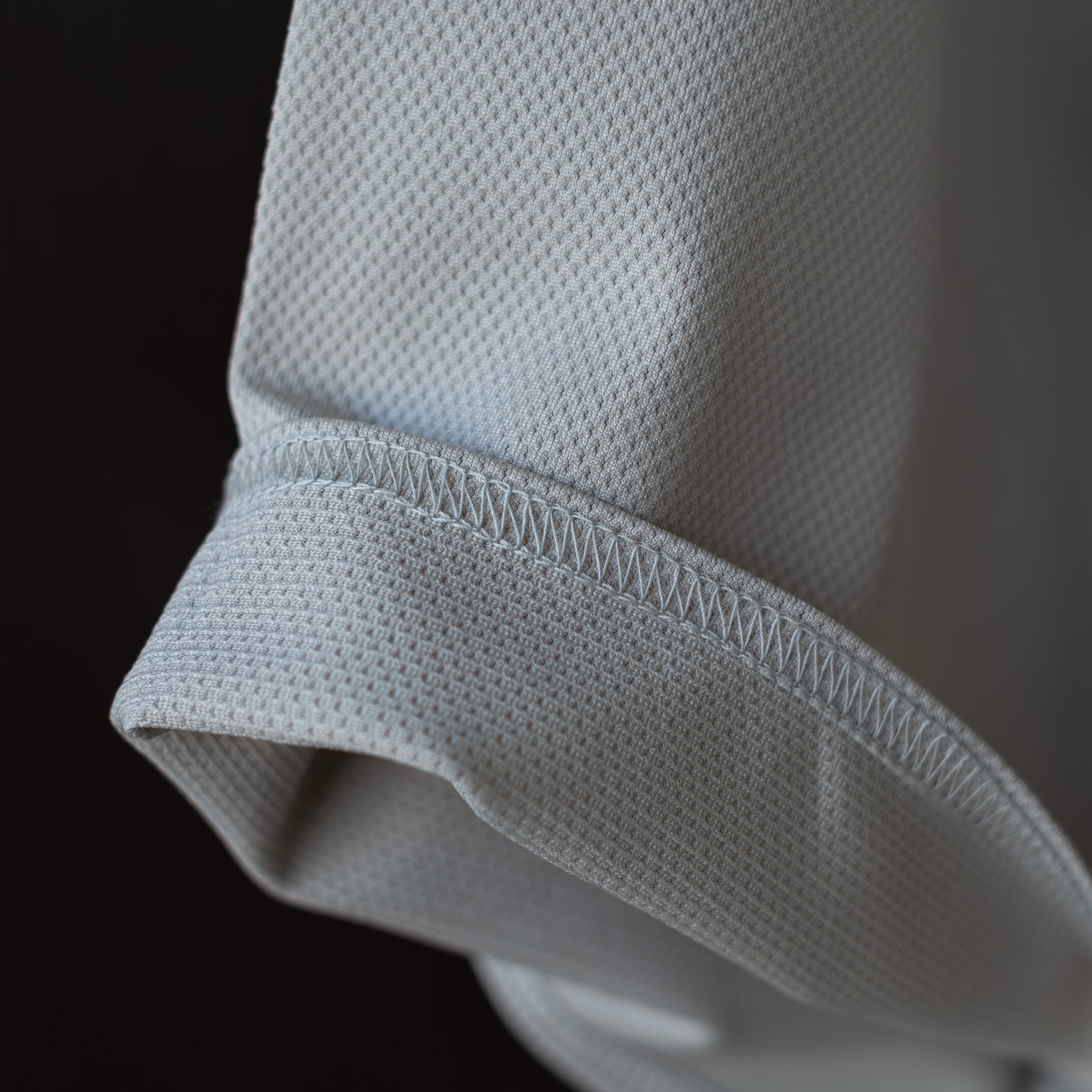 表情のあるメッシュ生地に加えて、武骨さを軽減するステッチワークと目を引くバギーシルエットによって仕上げた6分袖 DRY BAGGY T-SHIRT。