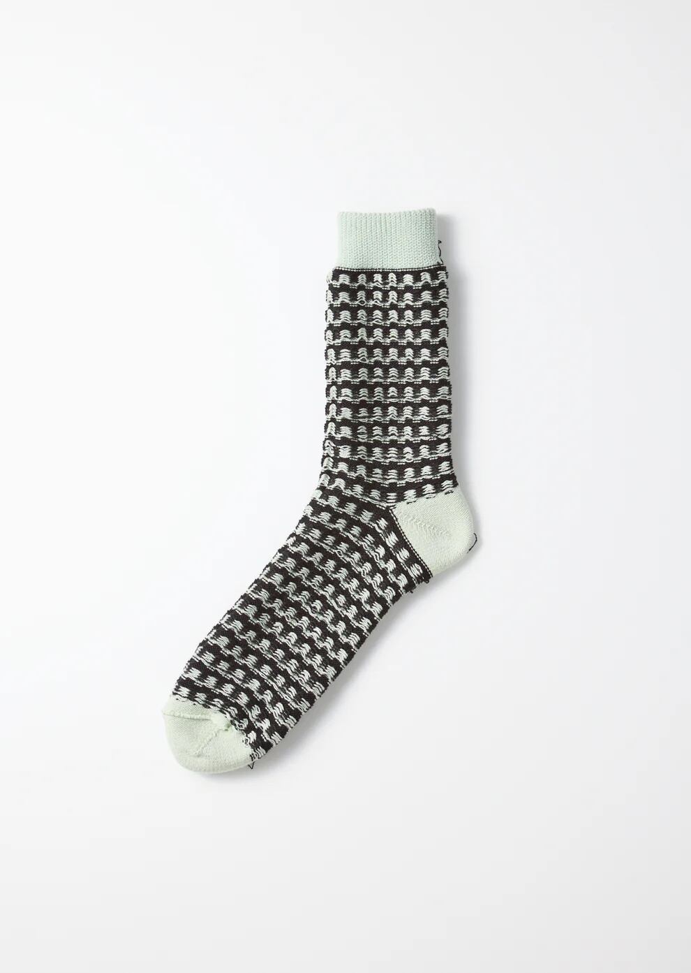 ミッドセンチュリーのテキスタイルデザインから着想を得た、シンプルなスクエアパターンが特徴的なソックス。